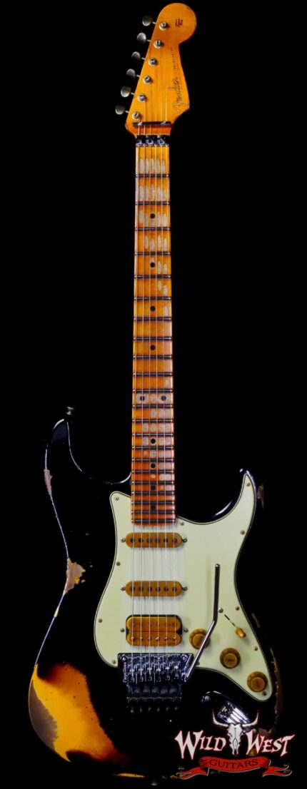 Fender Custom Shop Wild West Black Lightning Stratocaster HSS Floyd Rose Maple Board 22 Frets Heavy Relic 2 Tone Sunburst