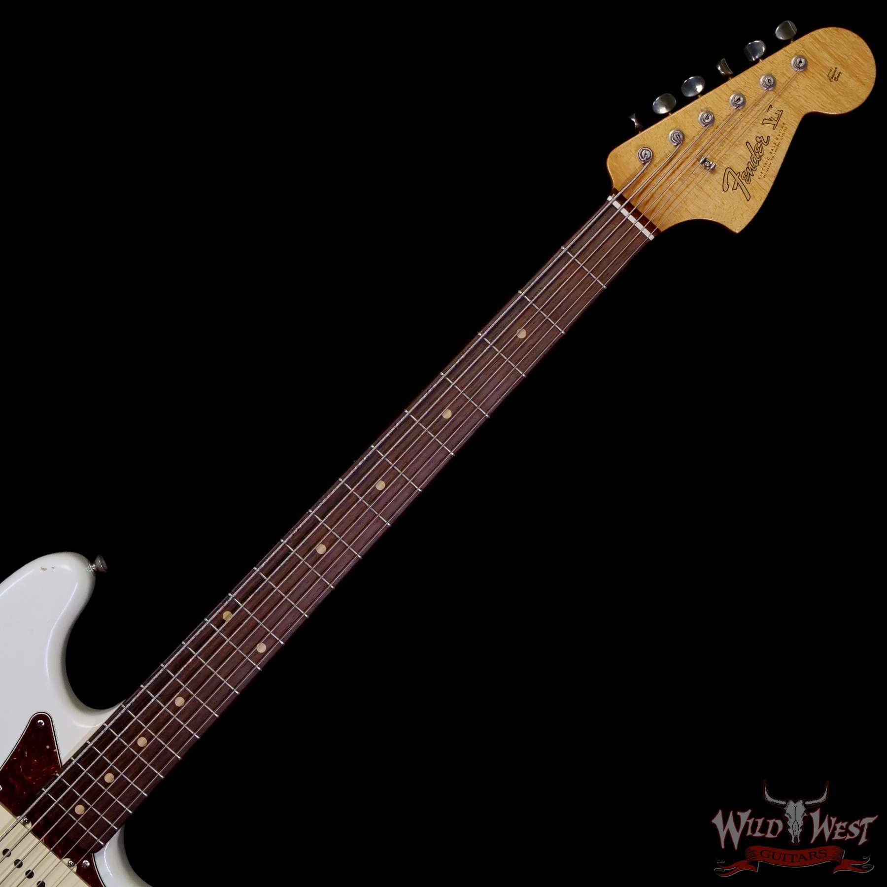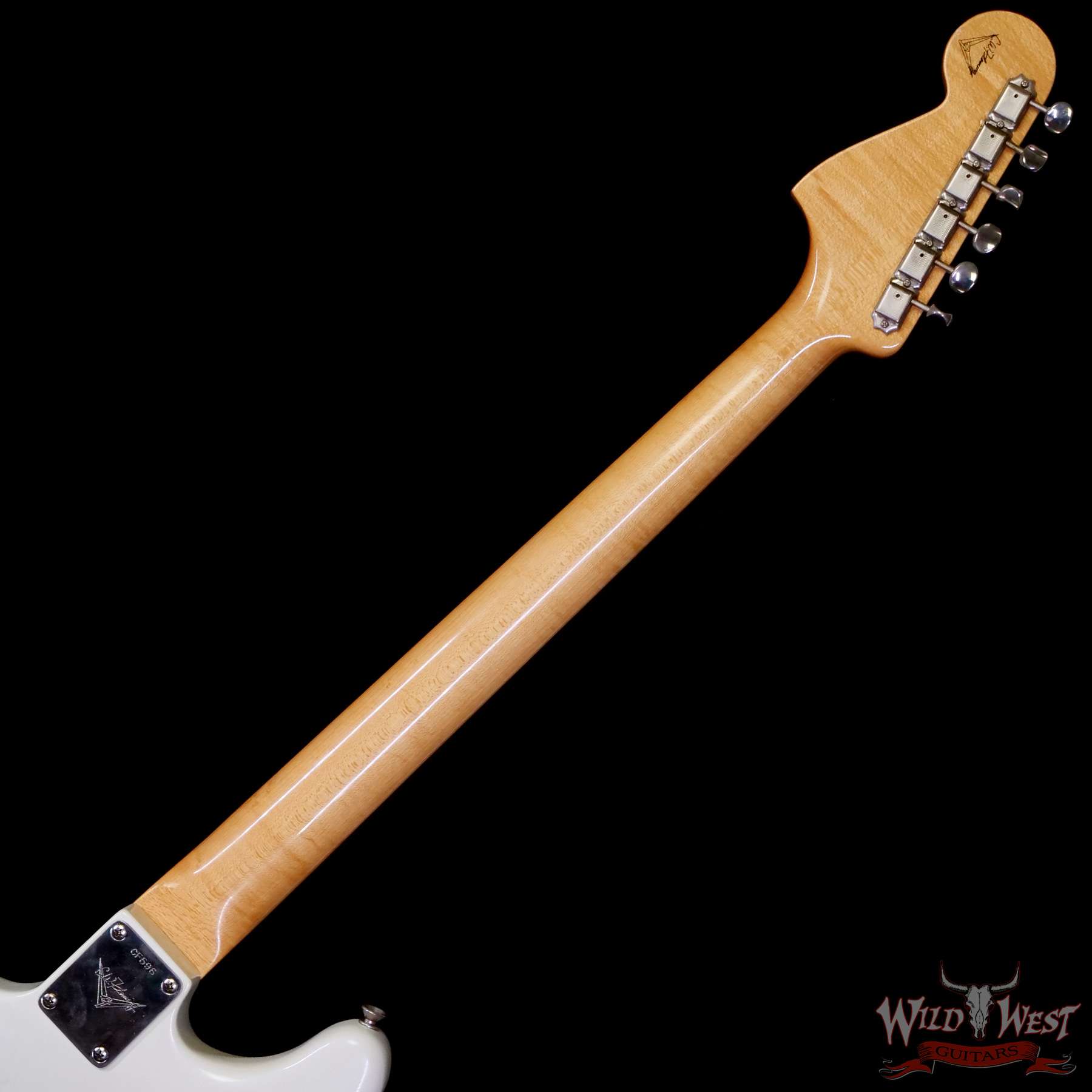 The instrument was originally finished in three-tone sunburst, but I later refinished it in reliced Olympic White.