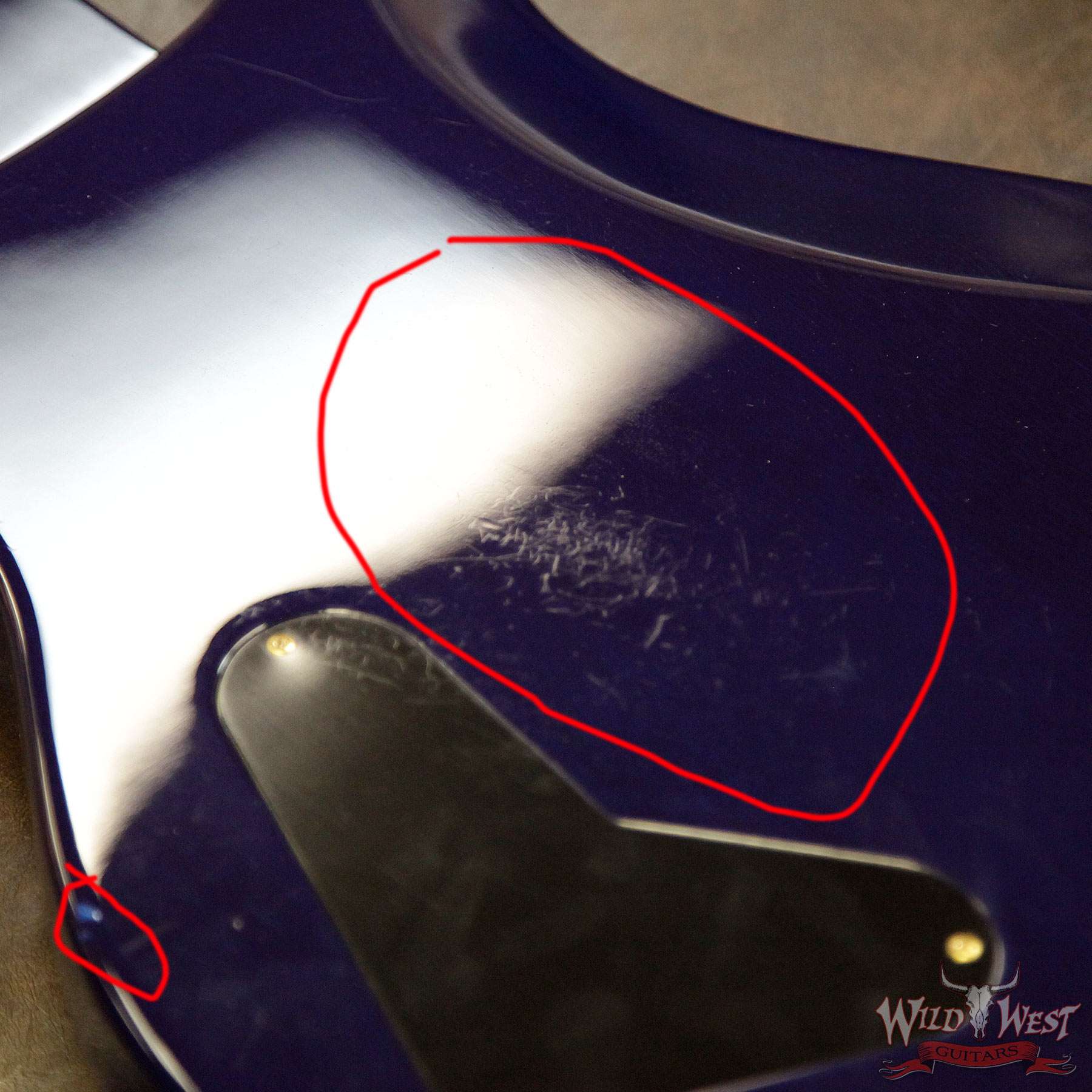 Very Good condition. Chips on top edges and back edges. 1 chip on the back of the neck at the 2nd fret. Buckle rash on the back. No chips or scratches deep enough to show exposed wood.