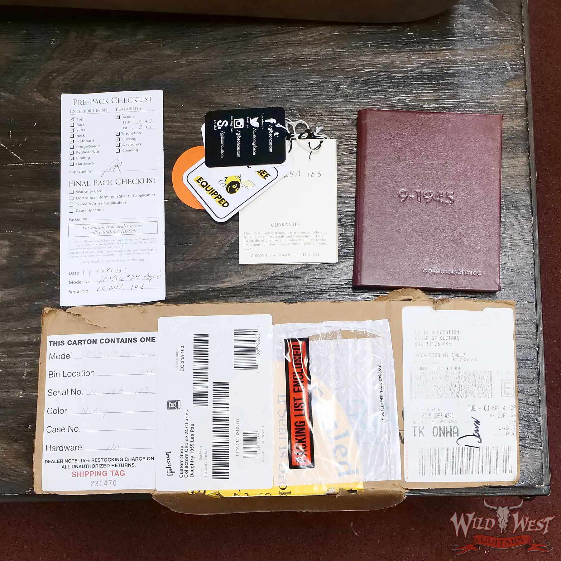 The Collector’s Choice #24 1959 Les Paul aka ““Nicky”” follows the Collector’s Choice series ethos in bringing to life the favorite original ‘59 Burst of collector Charles Daughtry, while stepping it all up to an unprecedented new level of fanaticism for 2015 thanks to the new True Historic specifications, representing Gibson’s most dedicated efforts yet to perfectly re-create the look, feel and tone of original vintage Les Pauls. Distinct details such as a hand-matched lightly figured maple top, double-pass dish and neck carve taken from scans of the original, aged period-correct appointments taken from molecular-level analysis of the originals, an Historic truss rod, accurately measured and reproduced PAF humbuckers, and a deliciously faded wet-sanded thin-lacquer Lemon Burst finish on a carefully hand-aged guitar make this an amazing opportunity for player and collector alike.