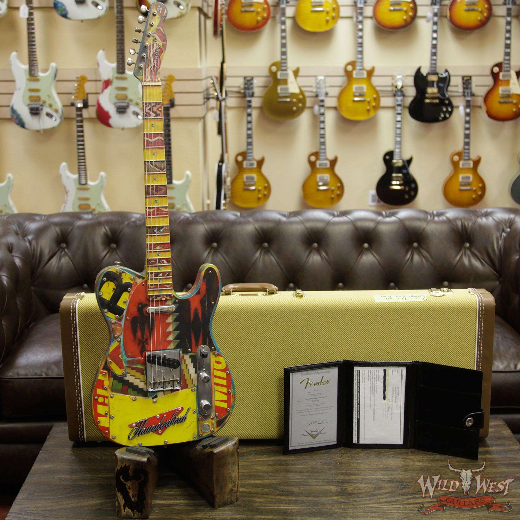 This is a very unique Fender Custom Shop Masterbuilt creation, a collaboration between builder Greg Fessler and artist Dave Newman. The guitar itself is a Telecaster relic emblazoned with art throughout the body, neck and fingerboard with Dave Newman’s Thunderbird art and logo on the top of the body. The art reminds us of both Native American designs as well as classic Americana imagery that both come together nicely on this guitar. It loaded with two Josefina handwound 63 Tele pickups and built of an ash body with an oval “C” maple neck for a comfortable feel.