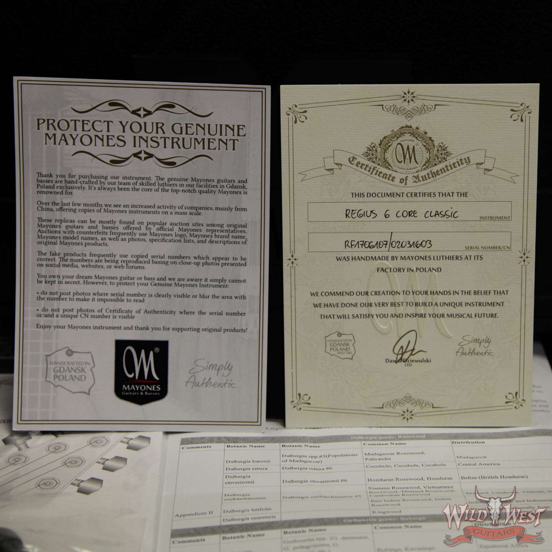 2017 Mayones Regius Core Classic 6 Flame Maple Carve Top Snakewood Fingerboard Jeans Black Satin in Mint Coniditon.