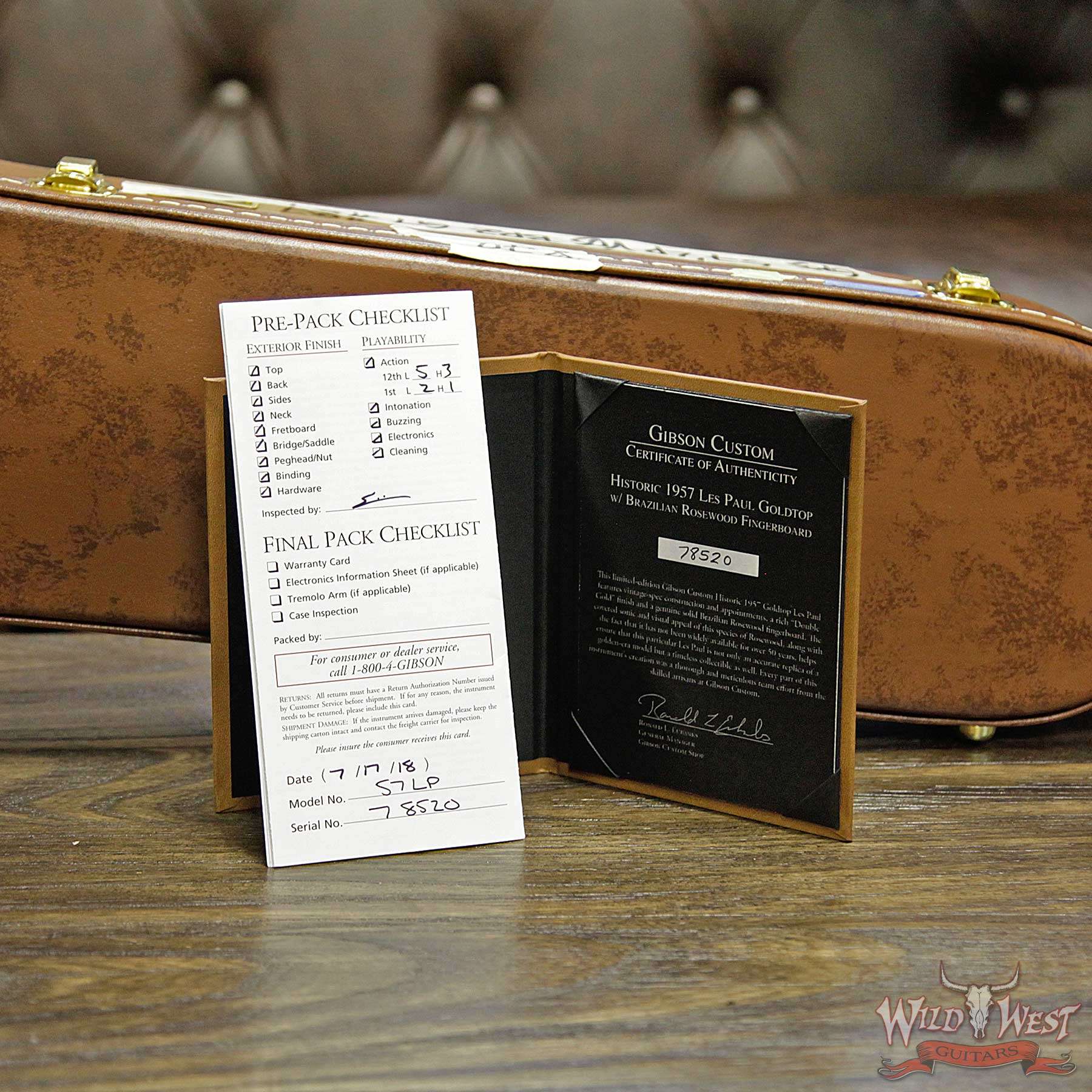 2018 Gibson Custom Shop Historic 57 Les Paul Standard VOS Brazilian Rosewood Fingerboard Goldtop 8.70 Lbs