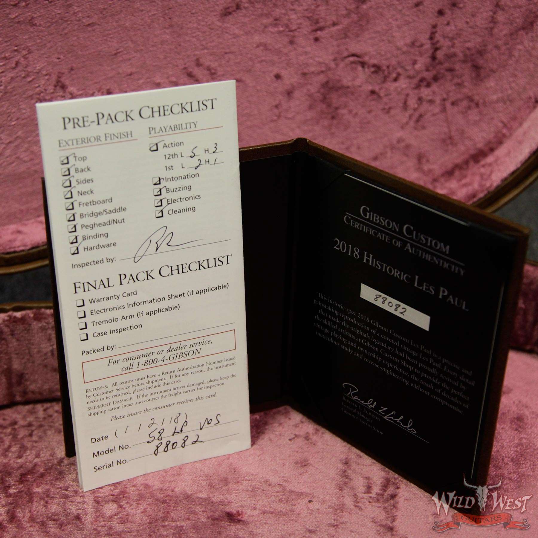 Model: Gibson Custom Shop 2018 Standard Historic 1958 Les Paul Standard