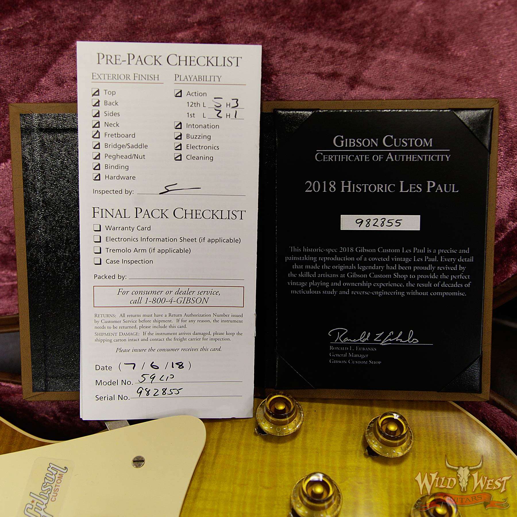 2018 Gibson Custom Shop Standard Historic 1959 Les Paul Standard VOS R9 Honey Lemon Fade 8.55 Lbs