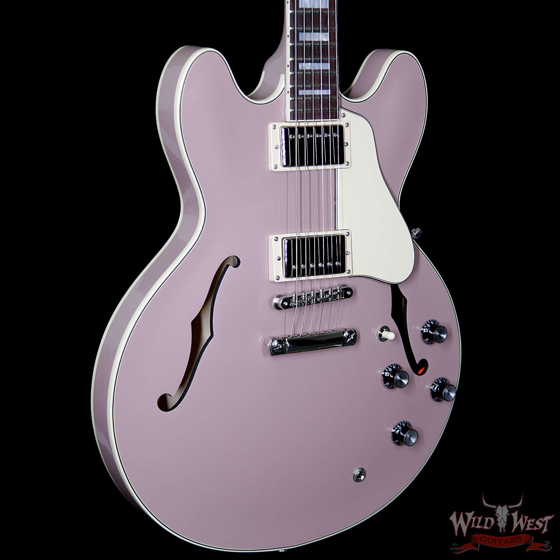 The new 2018 Gibson ES-335 “Big Block” is a guitar born to break the rules. Inspired by the American car culture of the 1950’s, this guitar captures the individuality that is expressed through the customization of the automobile. Not your tradiitional ES-335, the “Big Block” is appointed with unique features fetched from several legendary Gibson ES models. The 3-ply maple body is appointed with vintage slim taper horns and multi-ply ES-345 binding, while the dark rosewood fretboard is fitted with our ES-355 mother of pearl full block inlays. The result is a guitar that commands your full attention. New custom finishes include Classic White, Emerald Green Metallic, and Wood Rose Metallic.