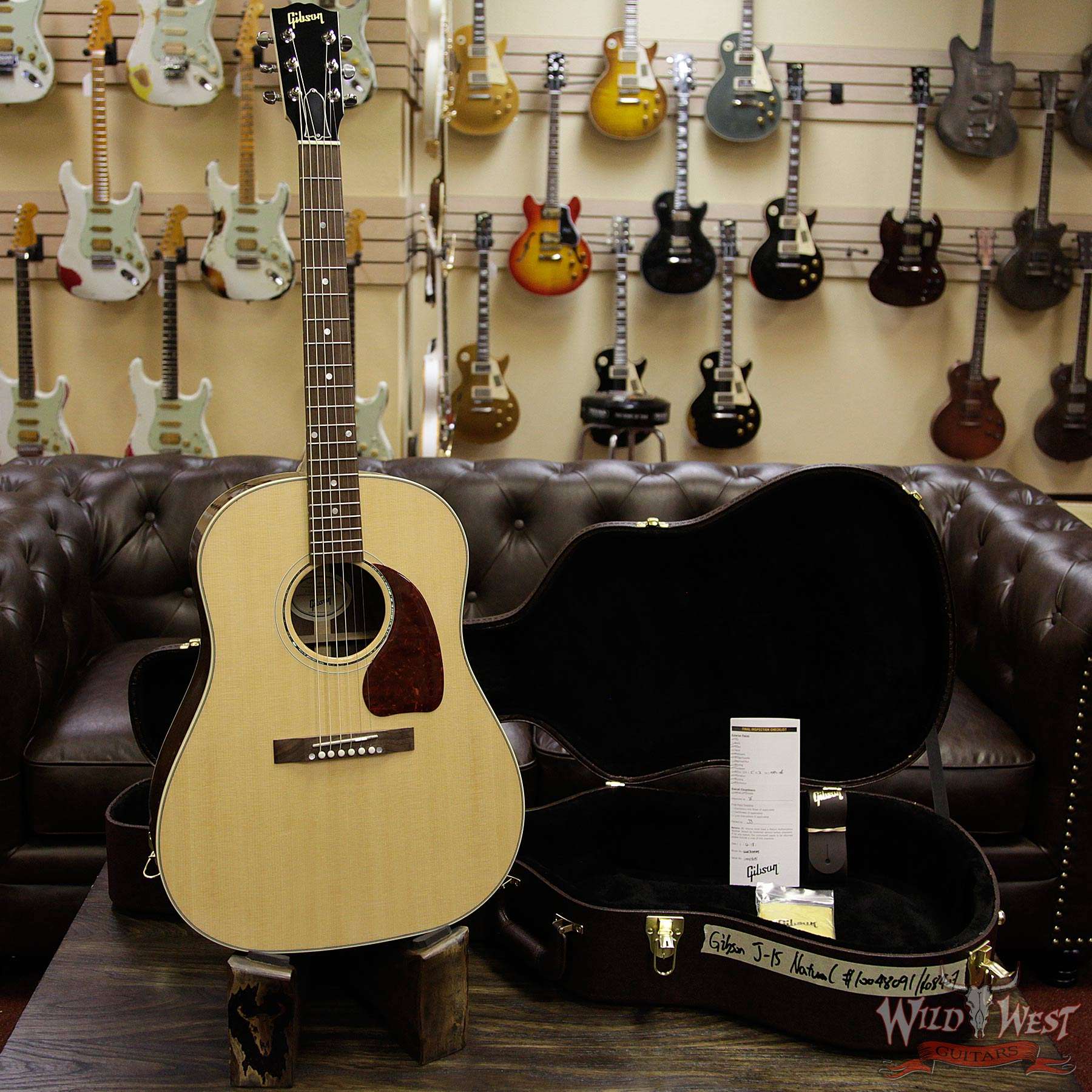 Every inch a Gibson, the J-15 is handcrafted from solid North American tone-woods, Sitka spruce top, walnut back and sides, and a maple neck. Built by our master-craftsmen using the same methods as all Gibson Acoustic models, the J-15 has a hand-fitted dovetail neck-to-body joint secured with hide glue to ensure resonance from strings to body.