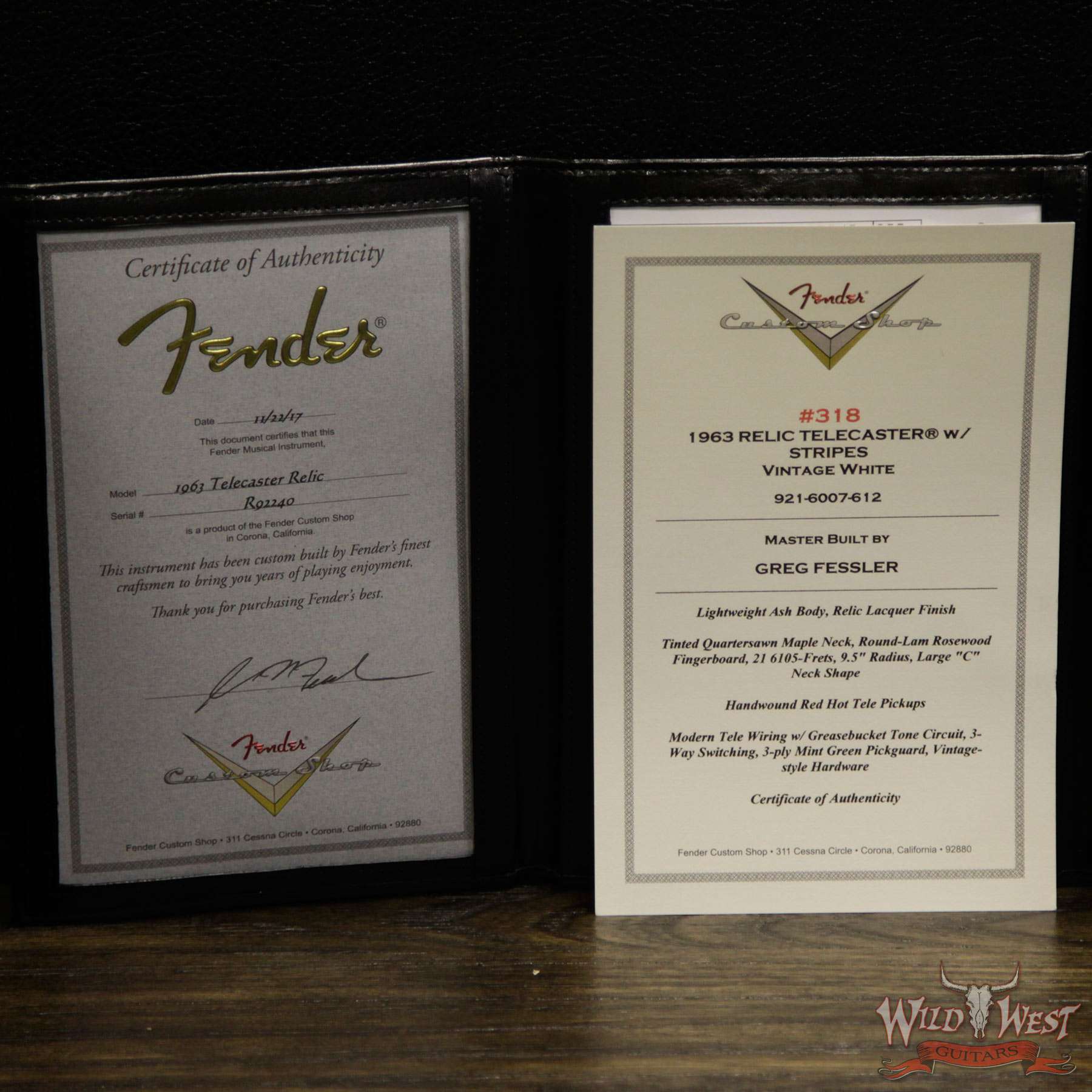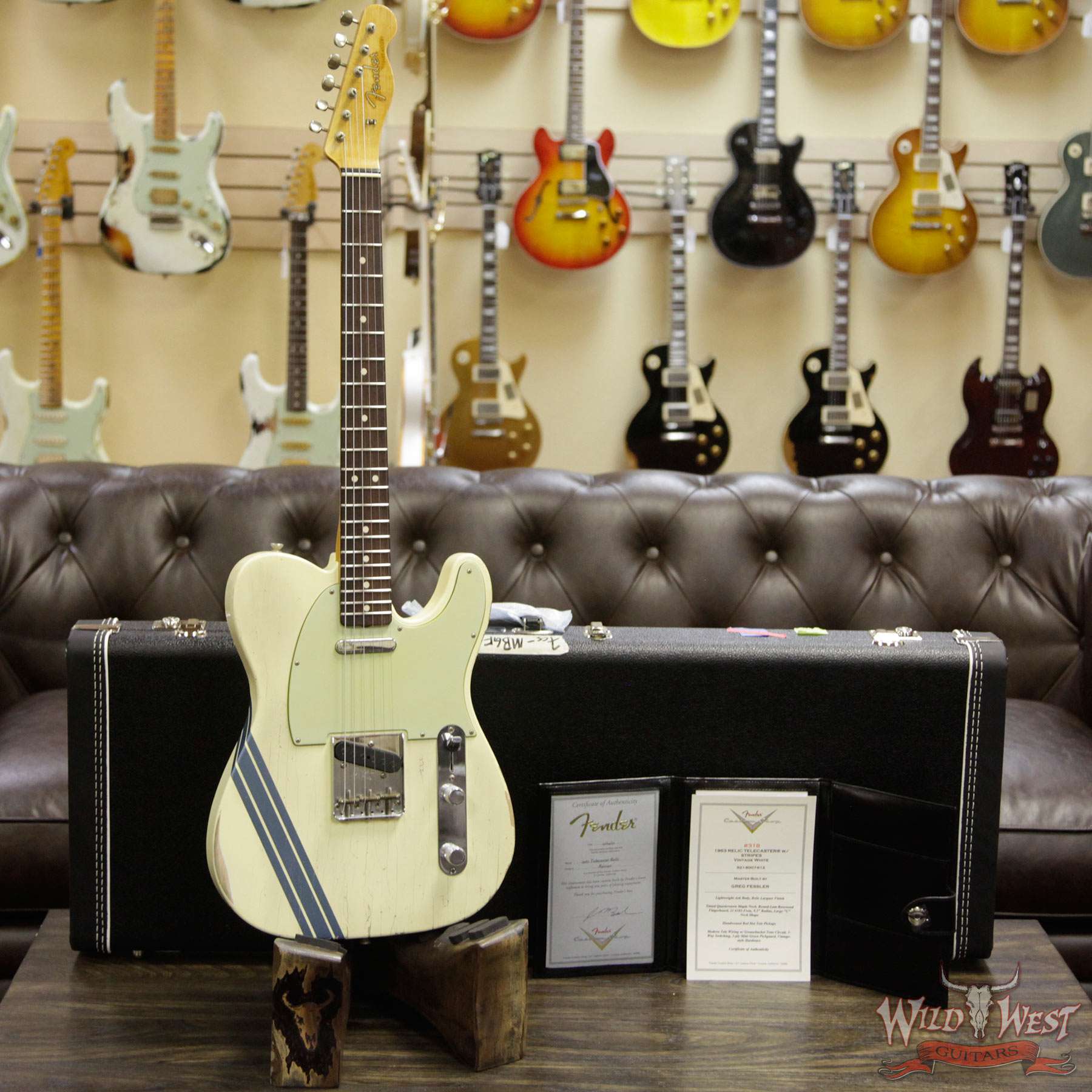 2018 NAMM Fender Custom Shop Masterbuilt Greg Fessler 1963 Telecaster Relic with Blue Stripes Vintage White