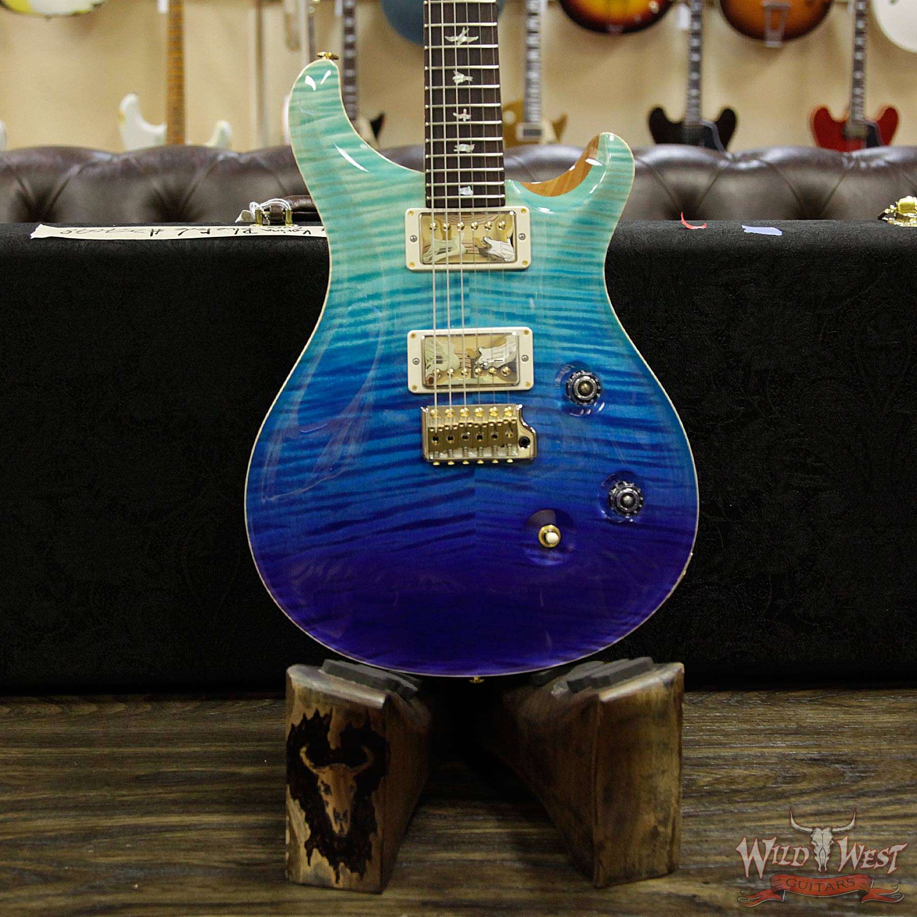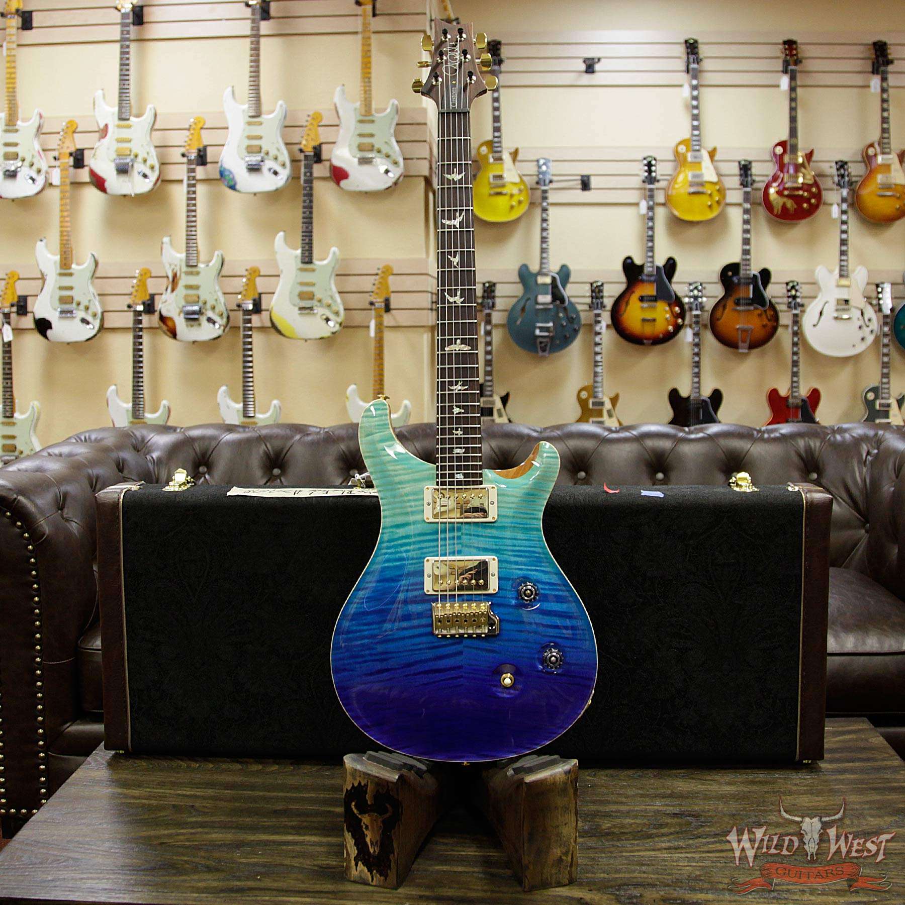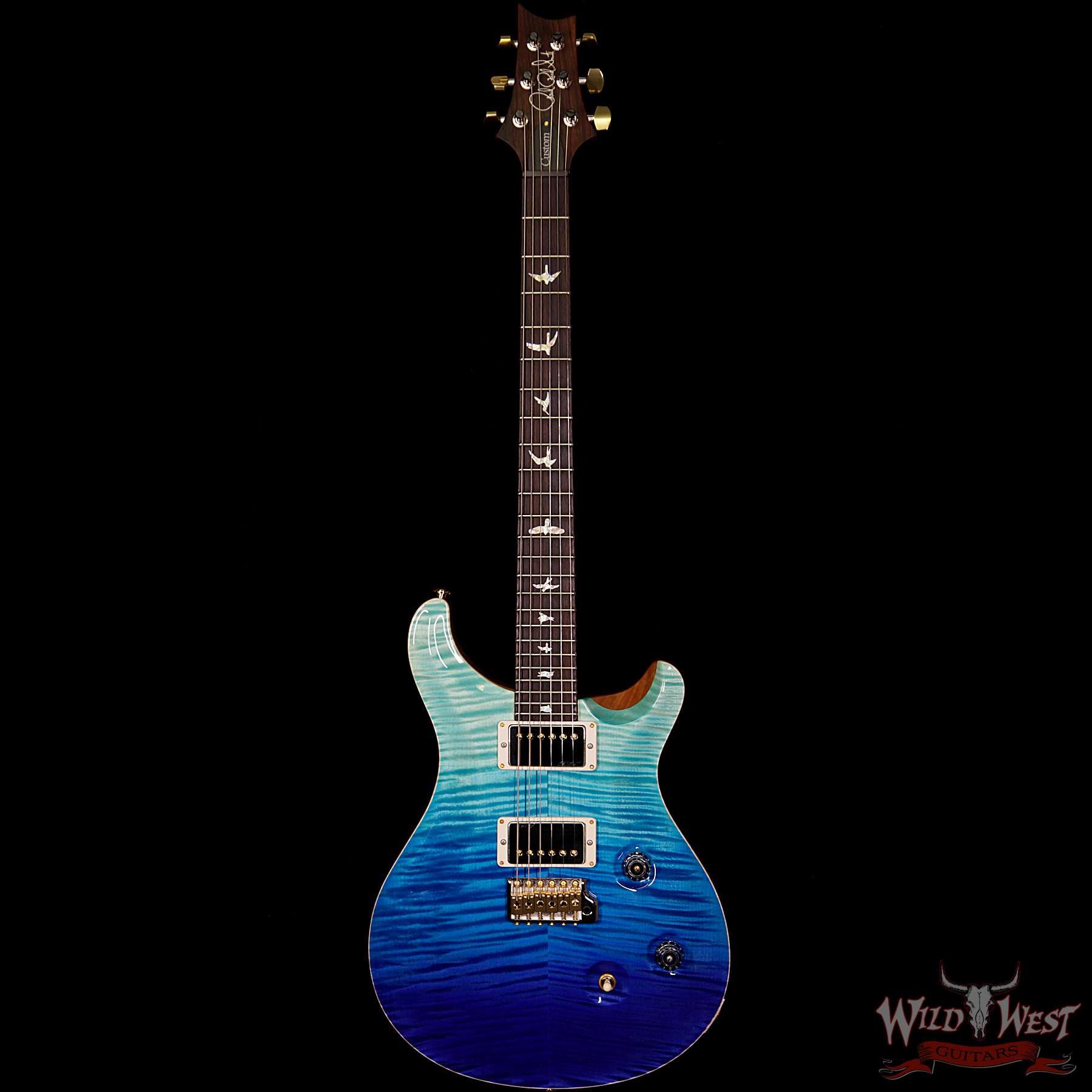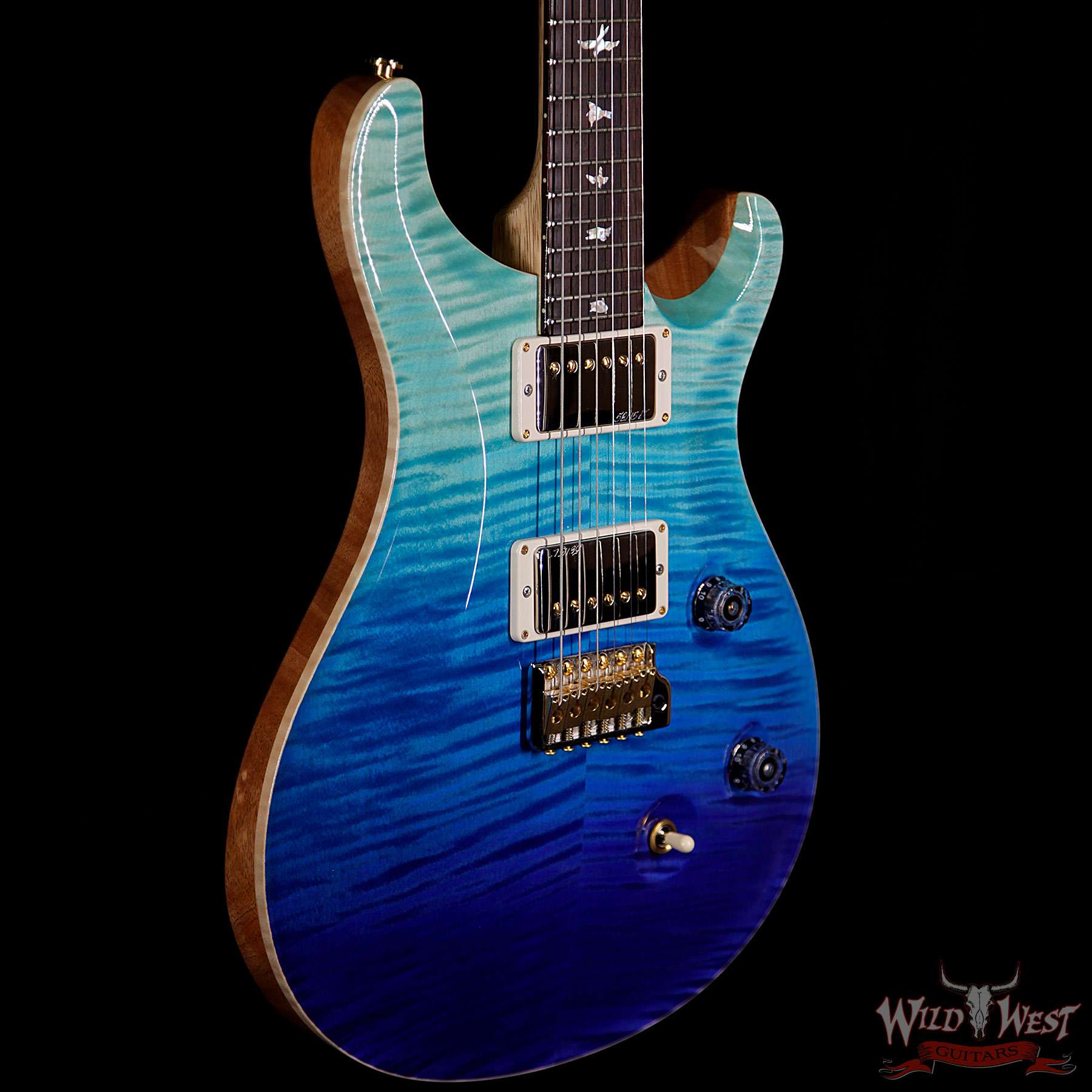 2018 PRS Wood Library 10 Top Custom 24 Flame Top Korina Neck Cocobolo Board Blue Fade