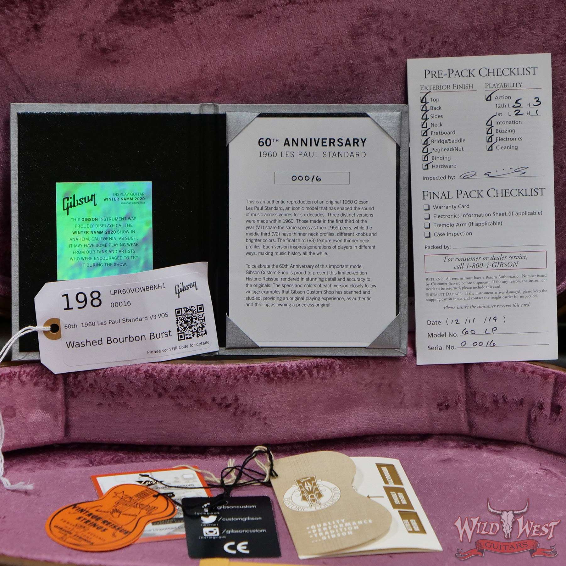 2020 NAMM Gibson Custom Shop 60th Anniversary 1960 Les Paul Standard VOS Washed Bourbon Burst 8.45 lbs