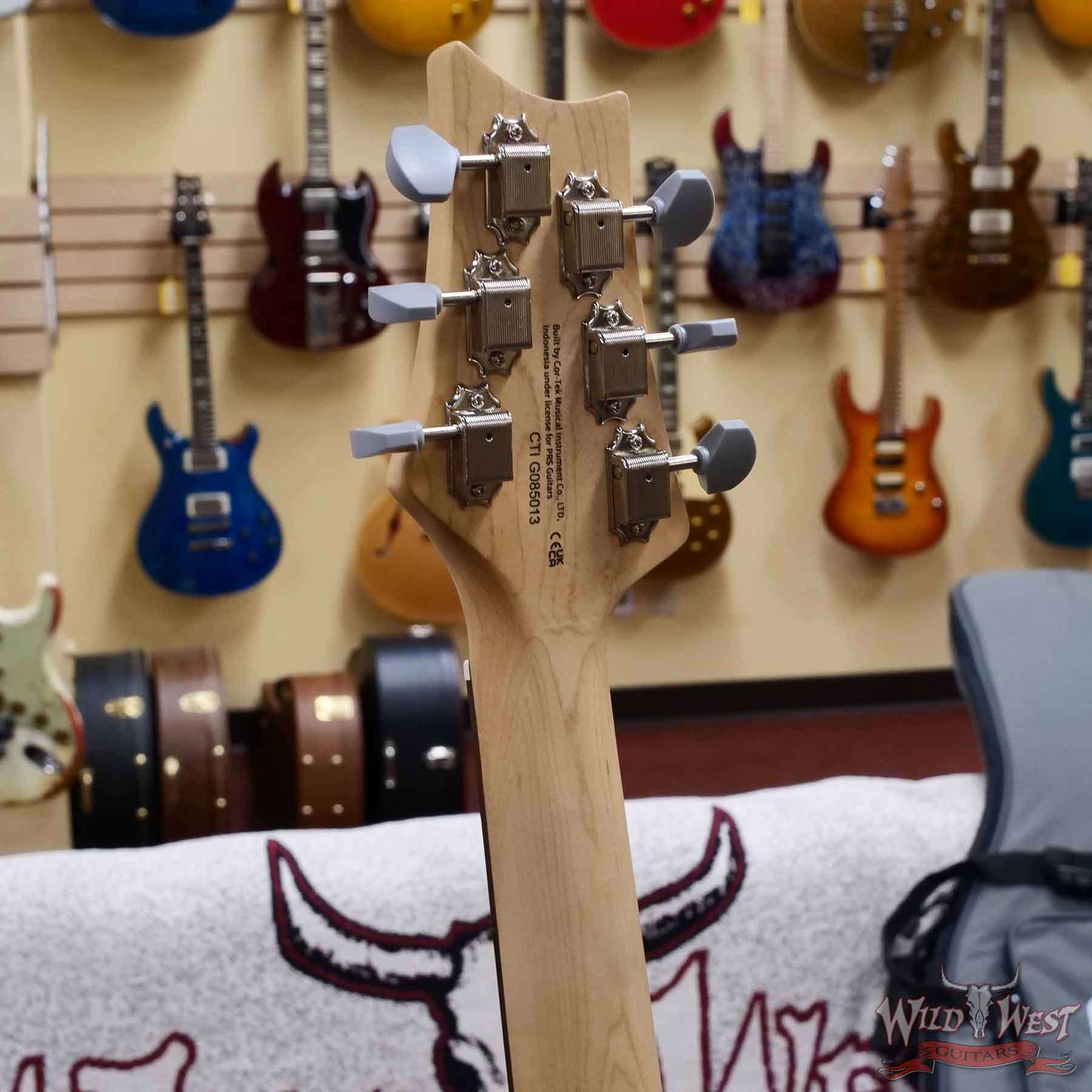 The PRS SE Silver Sky starts with a poplar body, bolt-on maple neck, and rosewood fretboard with PRS trademark bird inlays. The 22-fret, 25.5” scale length neck features the original 635JM carve and an 8.5” fretboard radius, so the PRS SE Silver Sky will feel right at home. Plug it in, and the three single-coil 635JM “S” pickups will bark and sing. This guitar is anchored by a two-point steel tremolo, synthetic bone nut, and vintage-style tuners. Other design features include the PRS Silver Sky inverted headstock shape and the PRS double-acting truss rod (accessible from the front of the headstock for ease of use). Ships with PRS Classic 10-46 strings and gig bag.