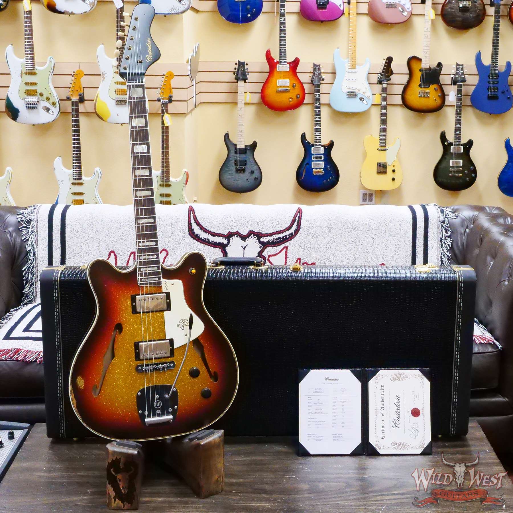 Castedosa Guitars 3511 Lobo Sem-Hollow Brazilian Rosewood Fingerboard 3 Tone Sunburst Sparkle Built & Relic by Carlos Lopez