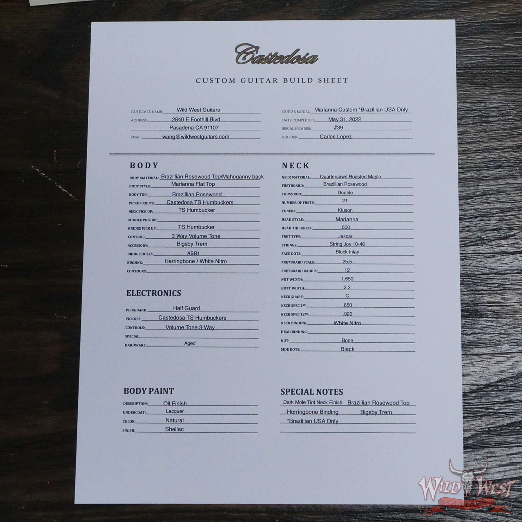 Castedosa Guitars Marianna Custom Brazilian Rosewood Top and Fingerboard Relic & Built by Carlos Lopez