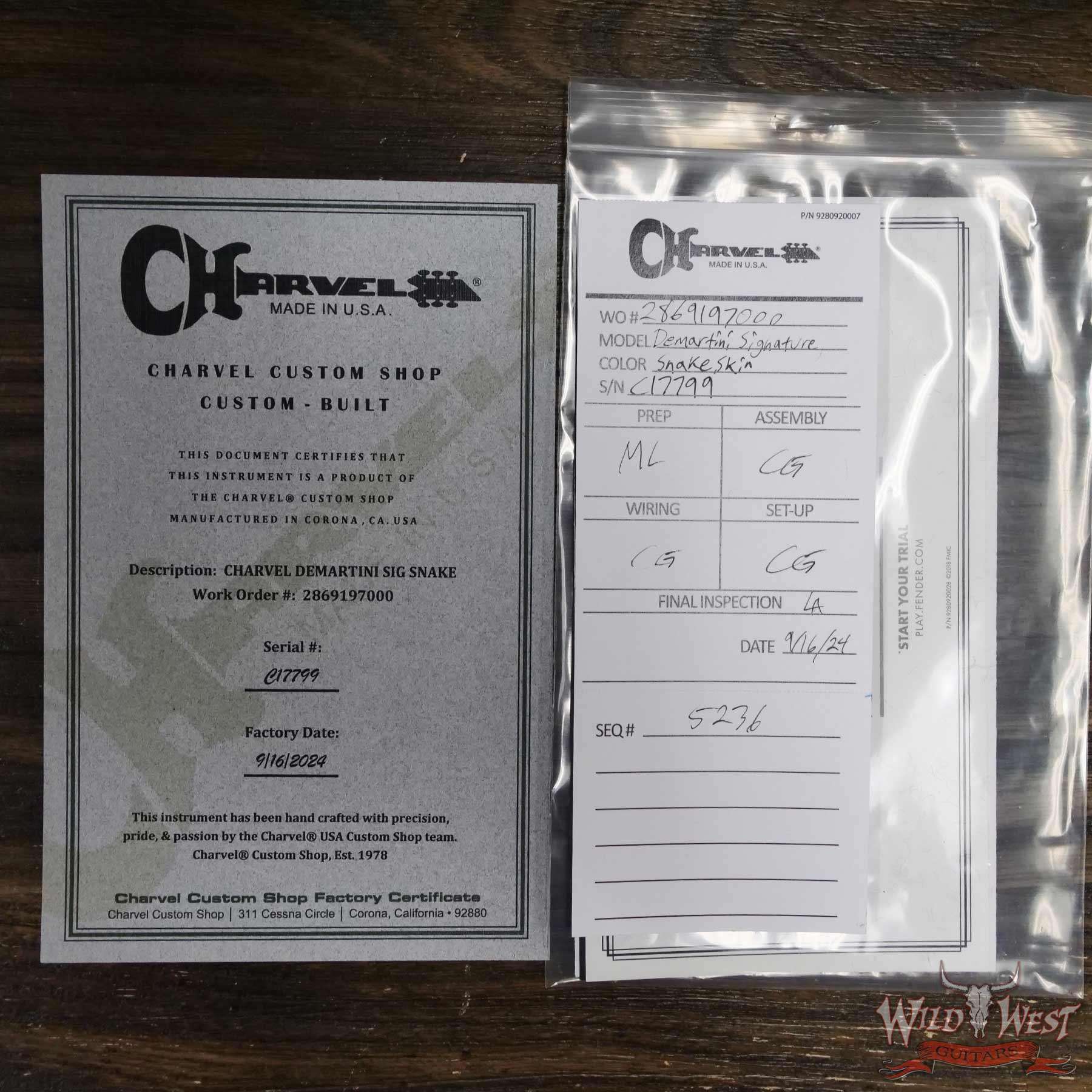 Model: Charvel USA Warren DeMartini Signature Snake Maple Fingerboard Snakeskin