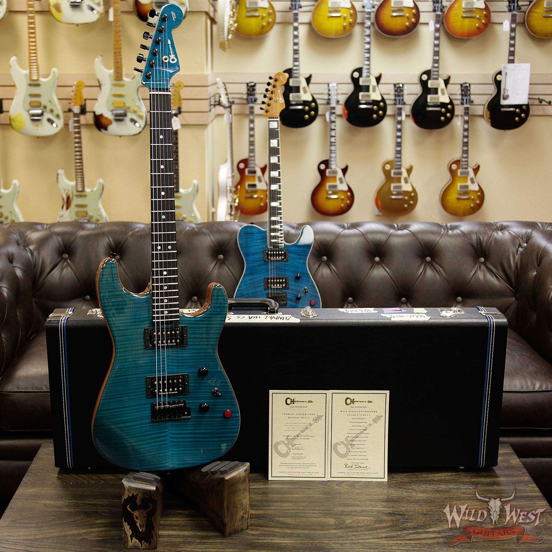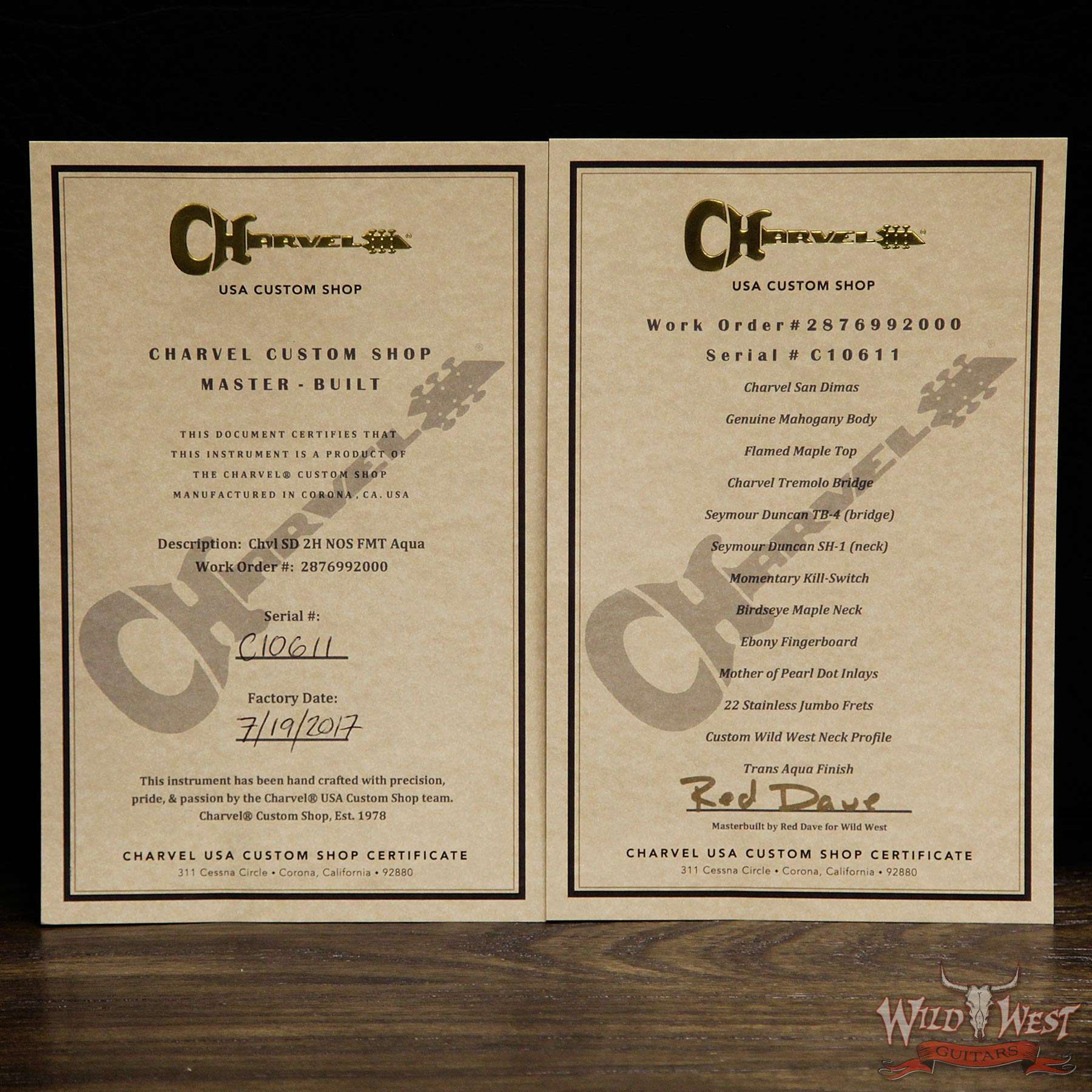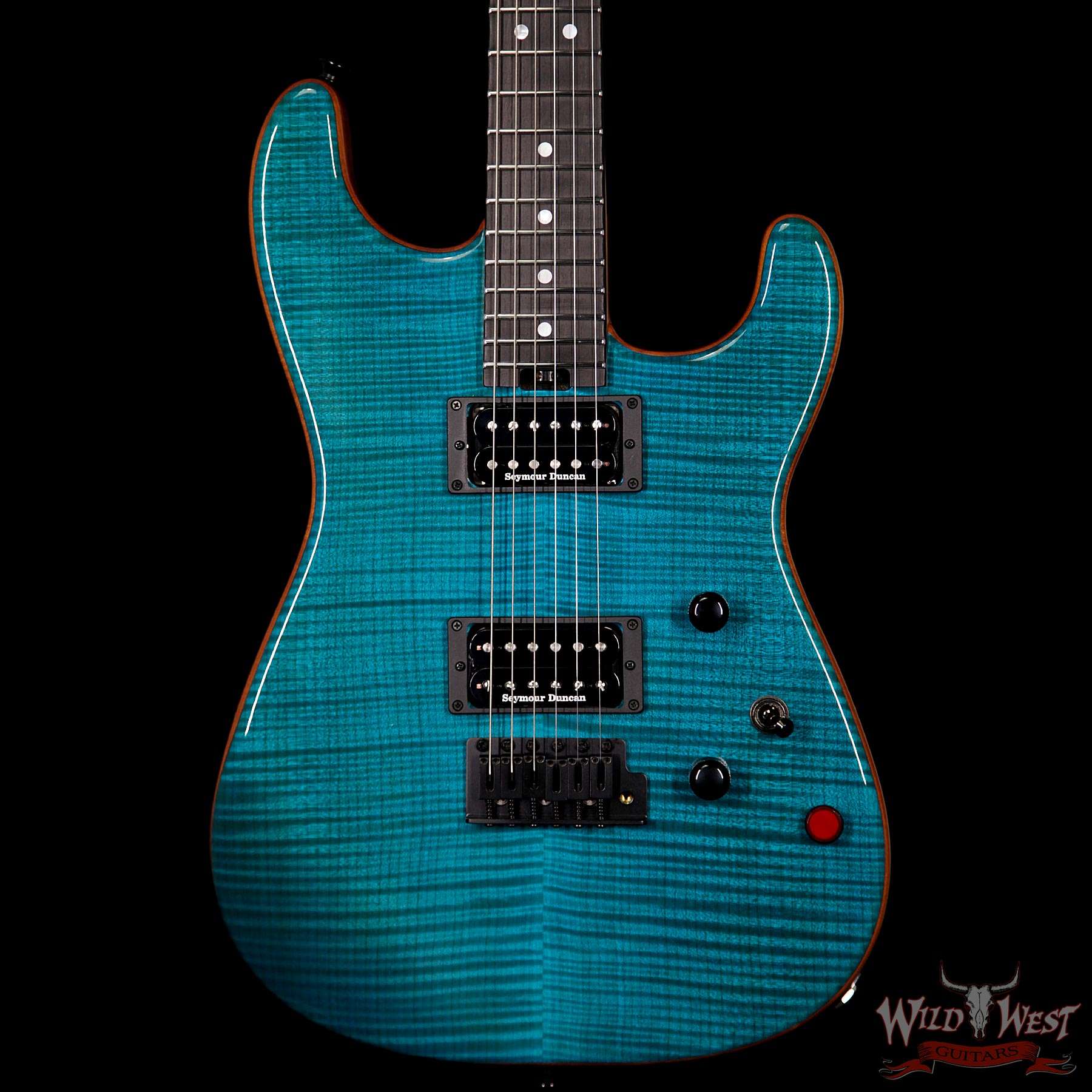 Charvel USA Custom Shop Wild West 004 Masterbuilt Red Dave San Dimas HH Flame Maple Top Birdseye Neck Ebony Fingerboard Kill Switch Trans Aqua