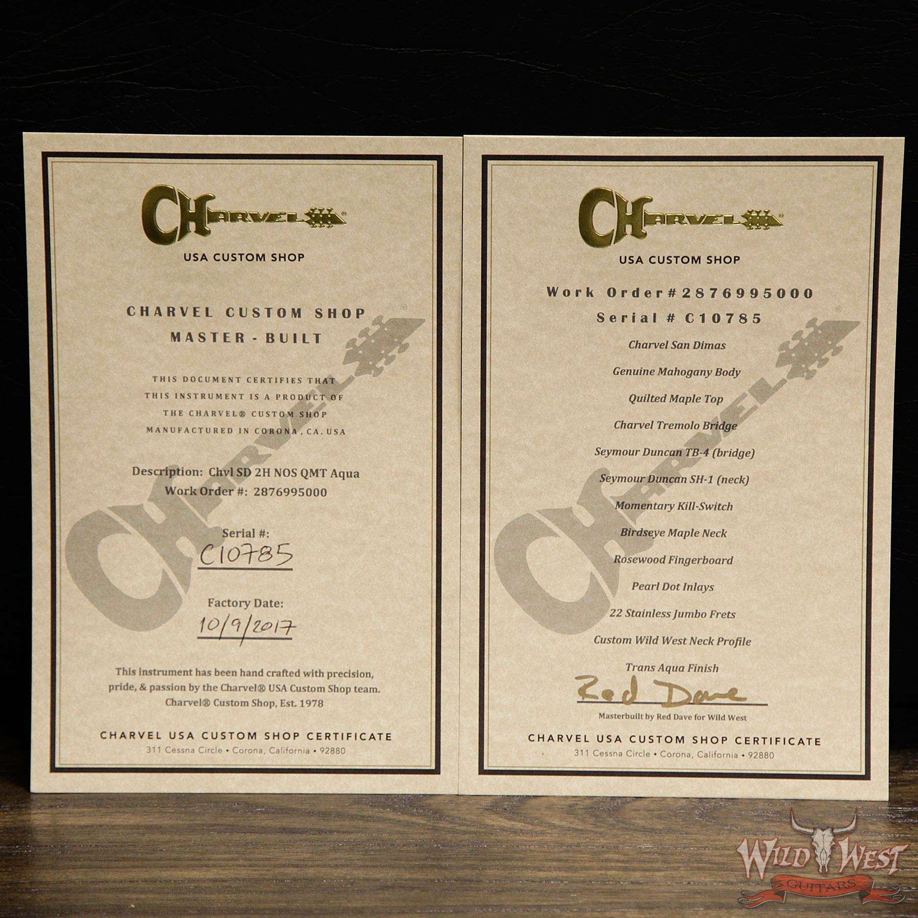 Charvel USA Custom Shop Wild West 009 Masterbuilt Red Dave San Dimas HH Quilted Maple Top Birdseye Neck Kill Switch Trans Aqua