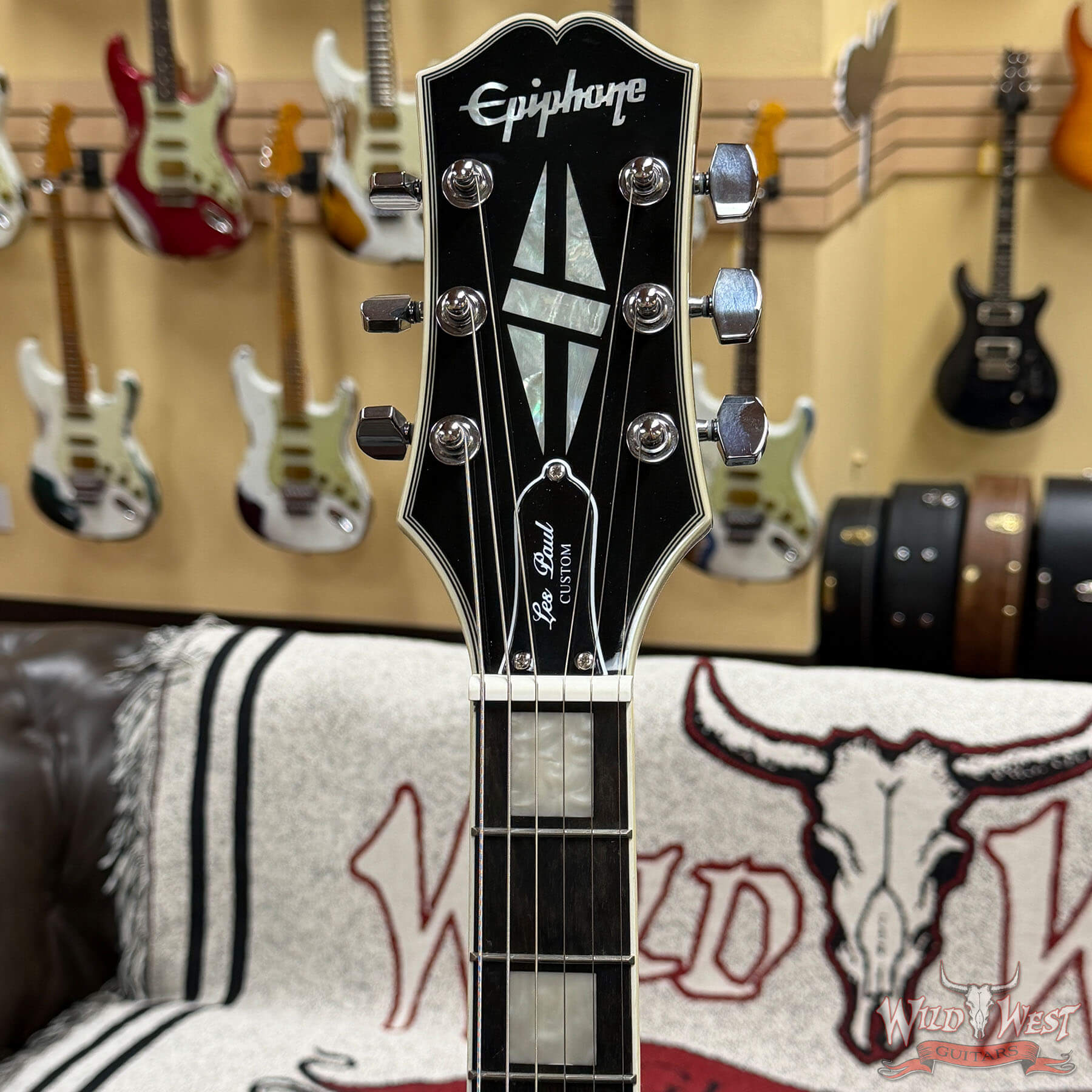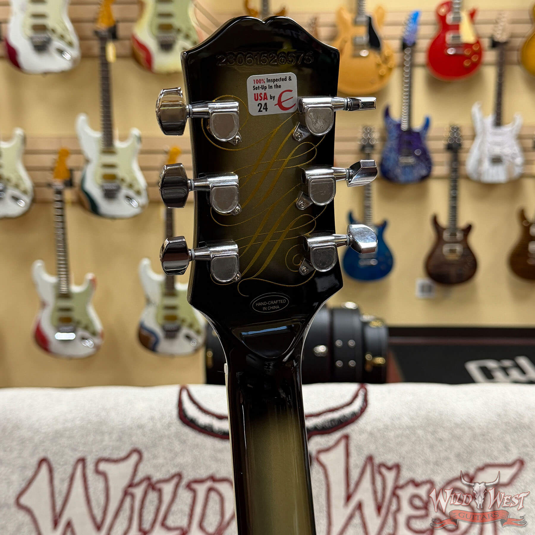 Headstock Inlay – Modern Epiphone Logo in Mother of Pearl, Custom Split Diamond in Mother of Pearl, Gold Artwork on Back of Headstock