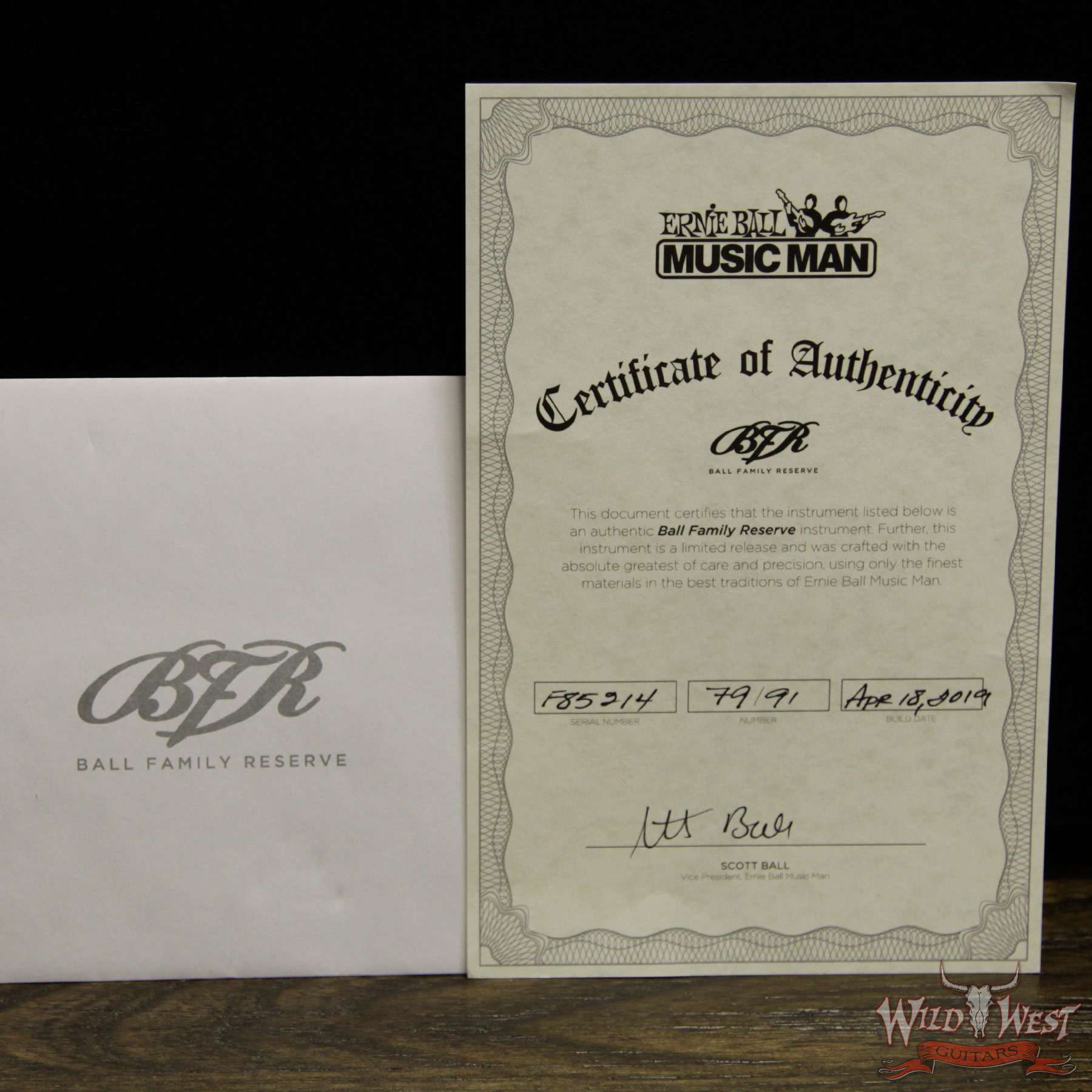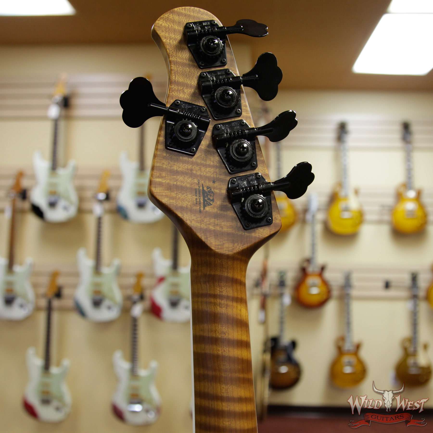 Beautifully figured roasted maple neck with black Schaller Music Man tuning machines.