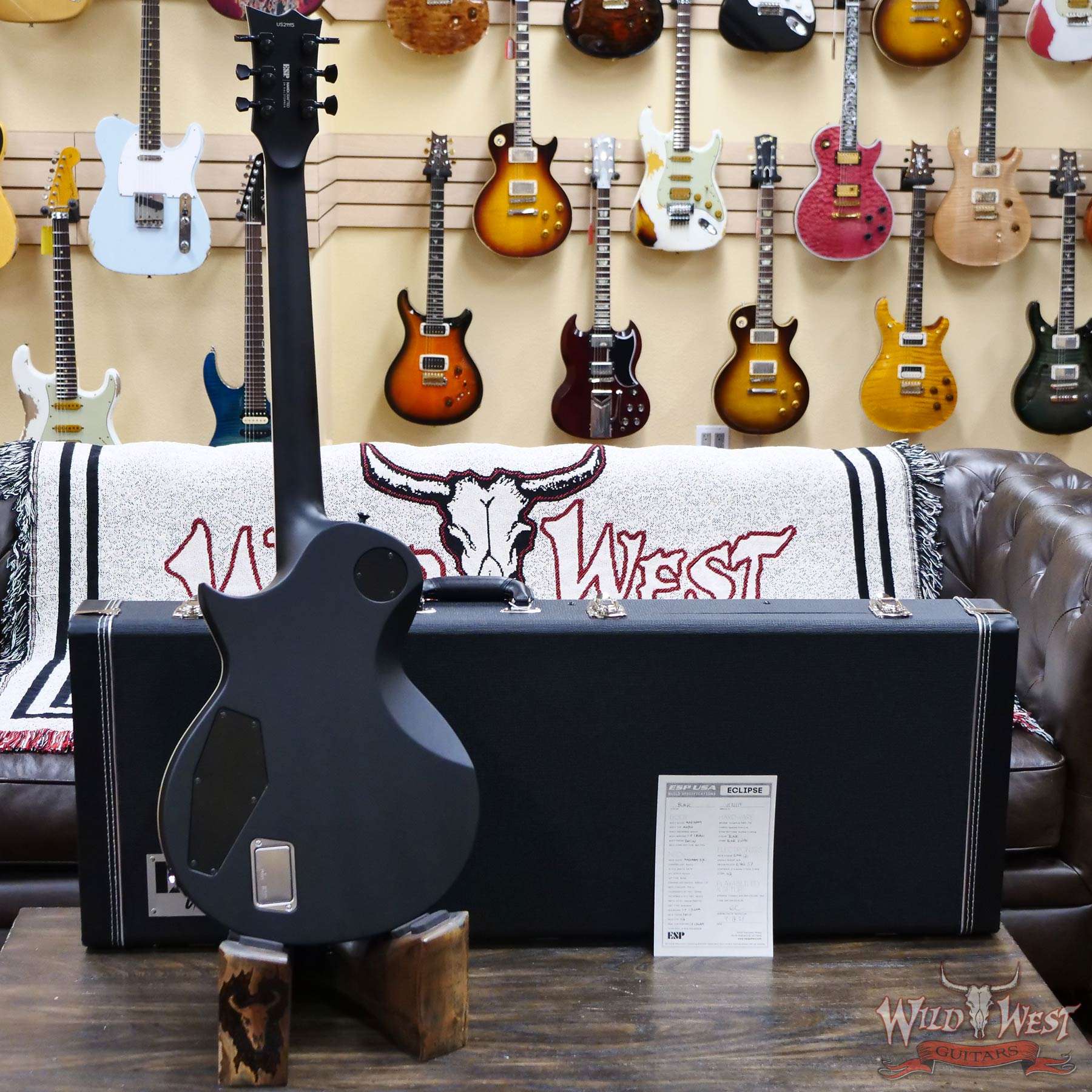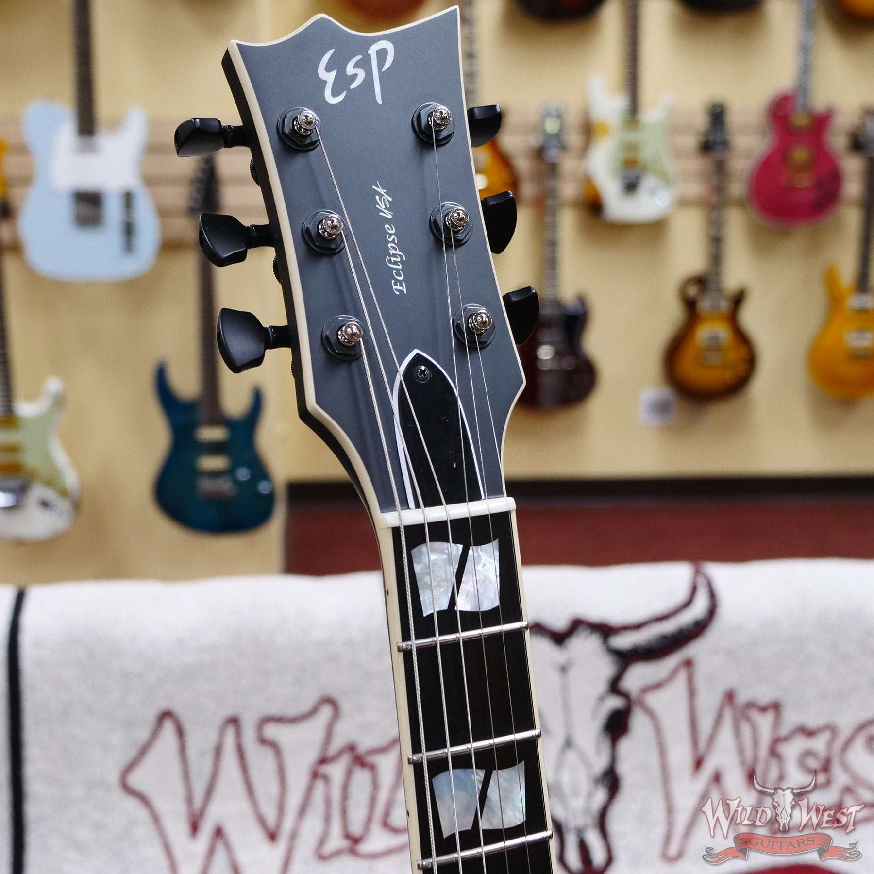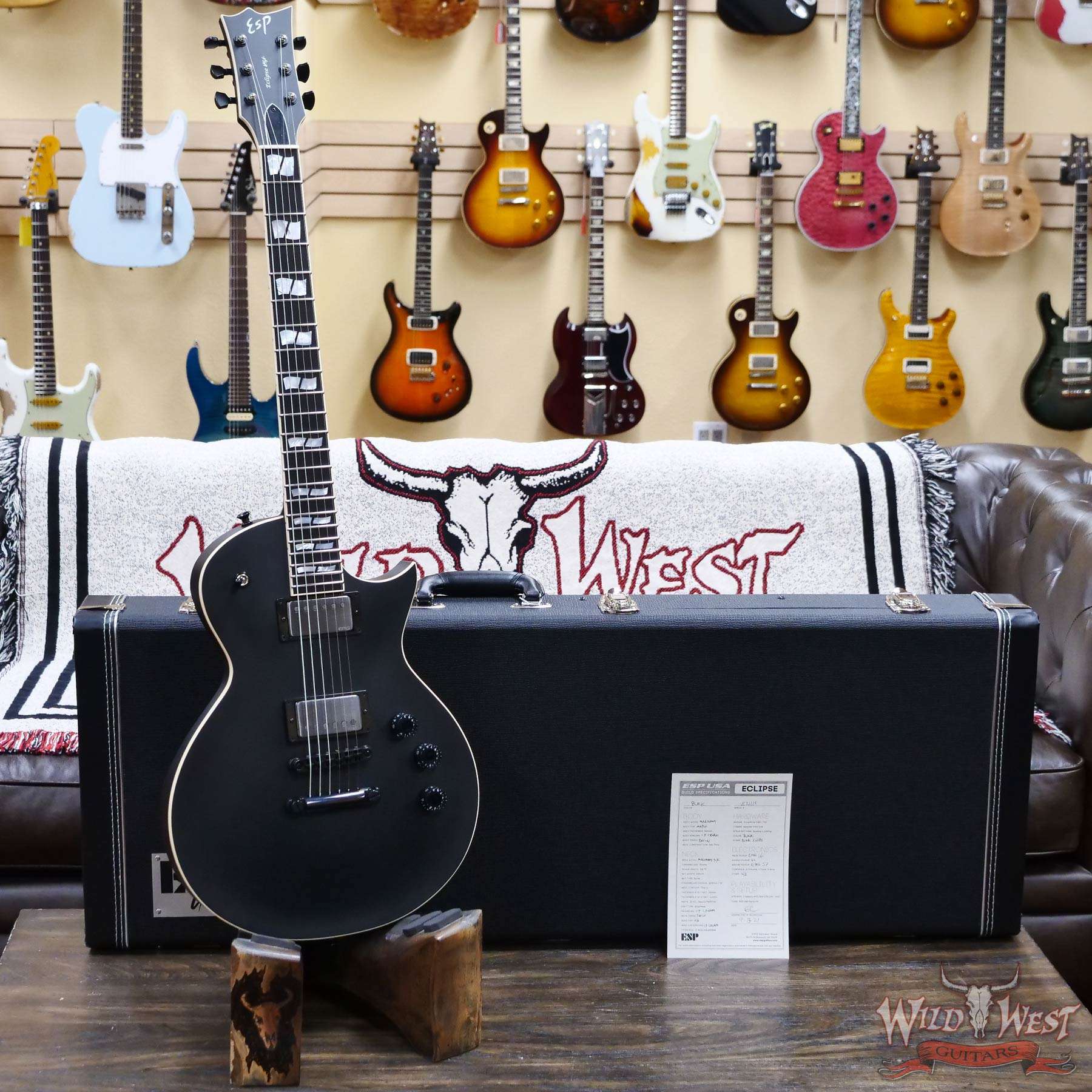 We chose the very best components available for the USA Eclipse, including Sperzel Trim-Lok tuners, TonePros locking TOM bridge and tailpiece, Dunlop strap locks, and a bone nut. Pickups for the USA Eclipse include a variety of world-class Seymour Duncan (passive) and EMG (active) models, with a push-pull coil split control on the tone knob for passive pickup models. The USA Eclipse includes a high-quality ESP USA form-fitting hard shell case.