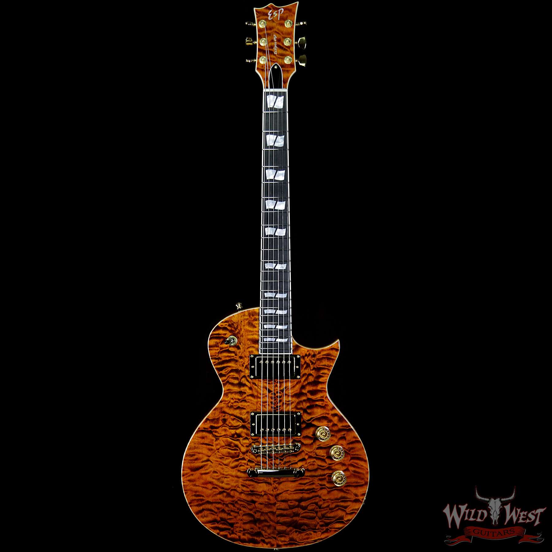 ESP USA Eclipse Quilted Maple Top Ebony Fingerboard Seymour Duncan APH-1 Pickups Tiger Eye Gold Hardware