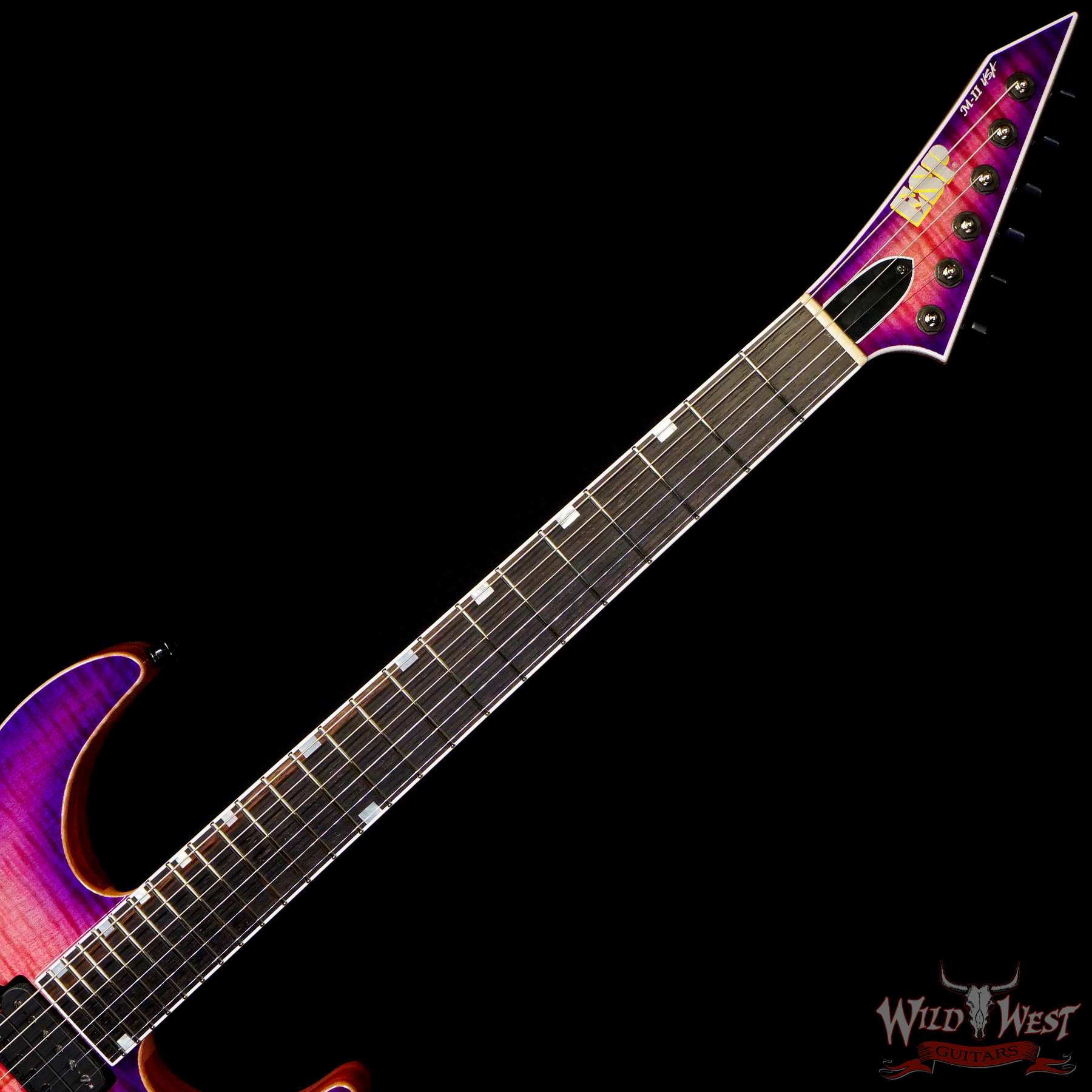 Crafted at our ESP USA facility in Southern California, the USA M-II NTB stands for “neck thru body”, and that’s exactly what it is… a shredder’s dream for those who love the stability and sustain of guitars with neck-thru construction. It offers an extra thin U-shaped three-piece maple neck with mahogany body wings. Optional premier-quality figured-wood tops are available on the USA M-II NTB NT including flamed maple, quilted maple, lacewood, zebrawood, and koa, with a variety of amazing translucent gloss and satin finishes to choose from, as well as an ebony fingerboard with mother-of-pearl offset block inlays.