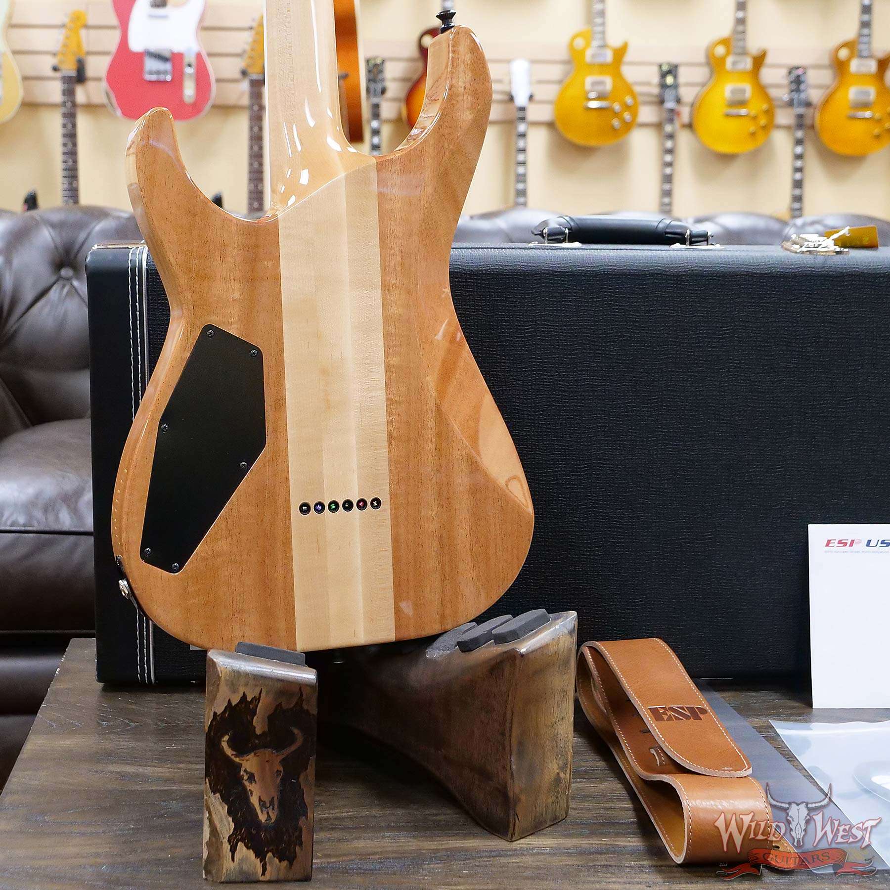 The droptop design on many of our ESP USA models allows for the beauty of a figured top that’s bent over the arm contour, adding a little brightness to the overall sound while retaining the warmth of the body wood. The natural masked binding edge adds amazing visual contrast.