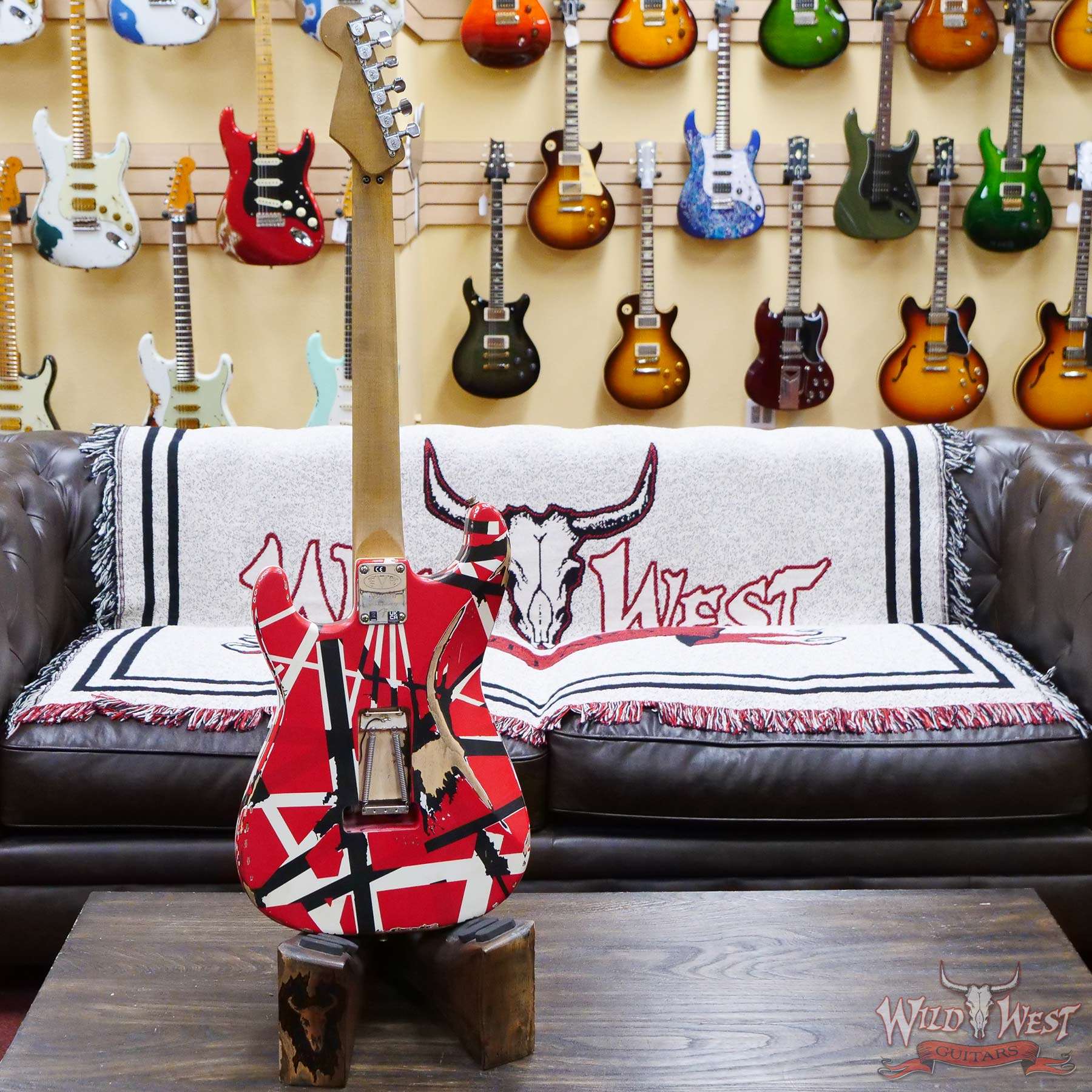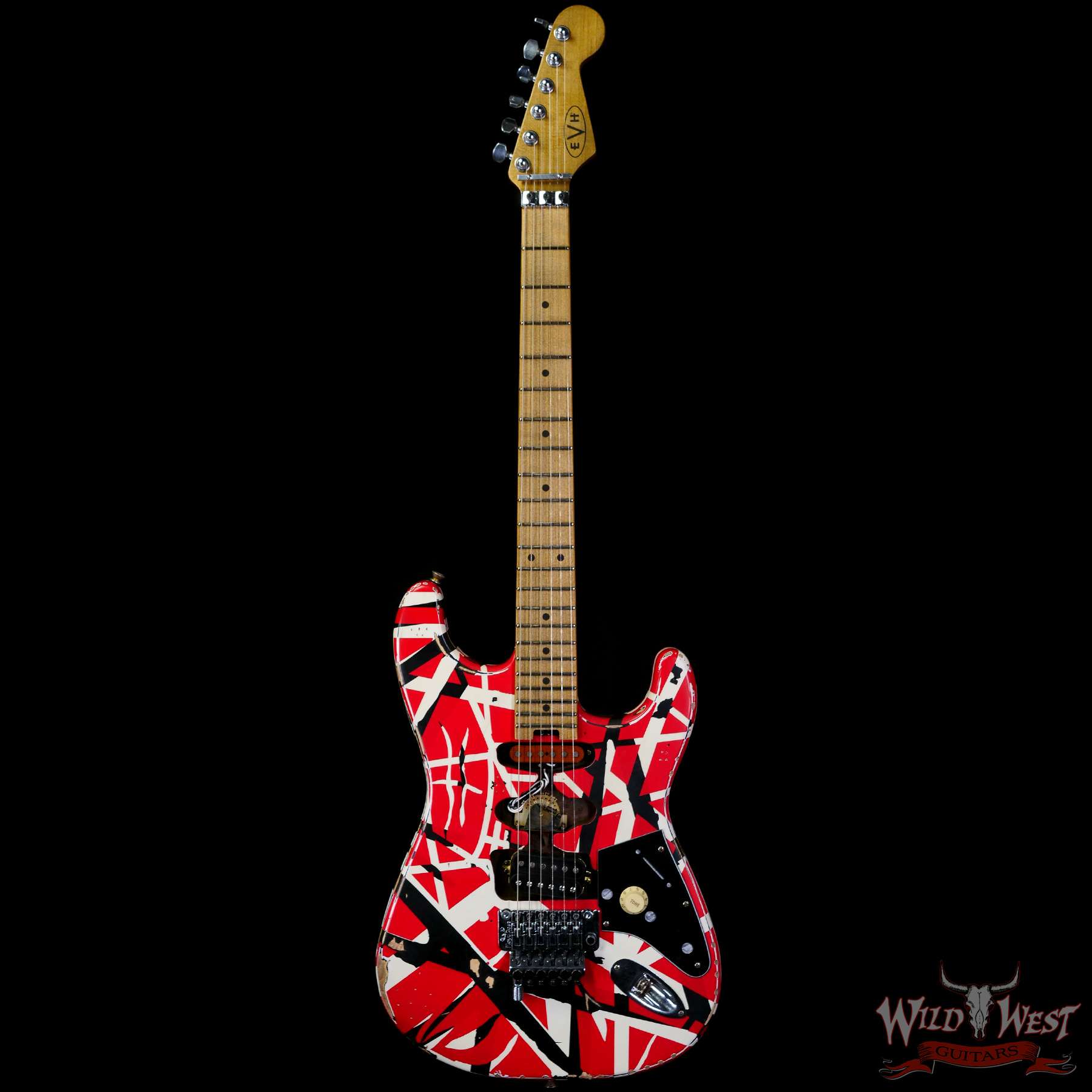 EVH Striped Series Frankenstei Frankie Maple Fingerboard Red with Black Stripes Relic