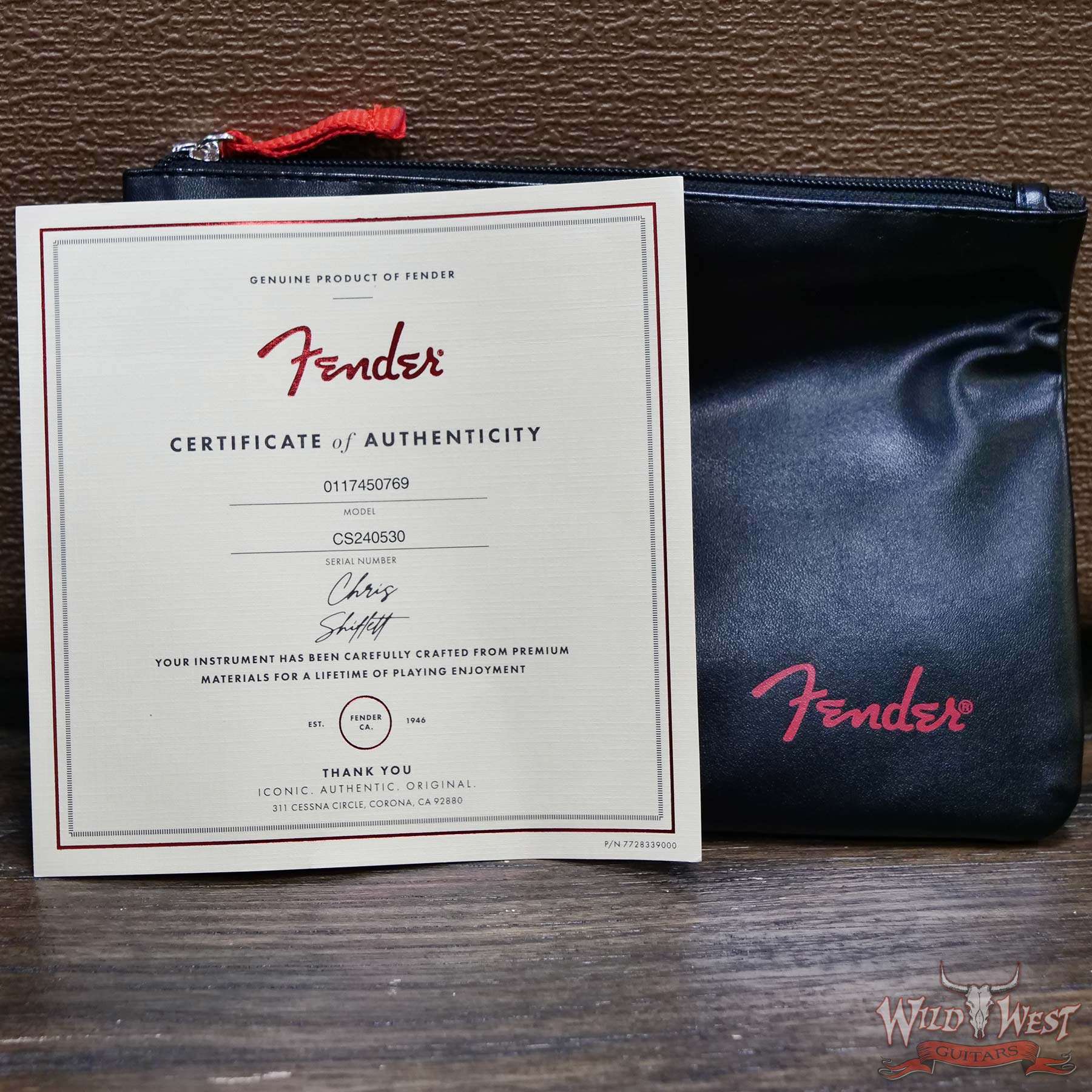 A resonant alder body lays the perfect foundation for bone-rattling, stadium-ready tones. Dressed up in a nitrocellulose lacquer finish, this alder body also has a “belly cut” for superior comfort during the longest sets. Built for speed, the 25.5” scale maple neck features a 12” radius rosewood fingerboard with 21 medium jumbo frets for fiery leads and silky bends. Pearloid block inlays add a touch of unexpected class to this Tele® – it’s a workhorse, but that doesn’t mean it can’t look good. The real magic lies in the pickups: two Custom Chris Shiflett “Cleaver” Noiseless™ CS-90 pickups pair powerful output with the throaty midrange punch and singing highs of a vintage single coil, all without hum. The “F”-style tuning machines, bone nut and wing string tree with nylon spacer keep things in tune through marathon sets, while the string-through body hardtail bridge enhances resonance and sustain.