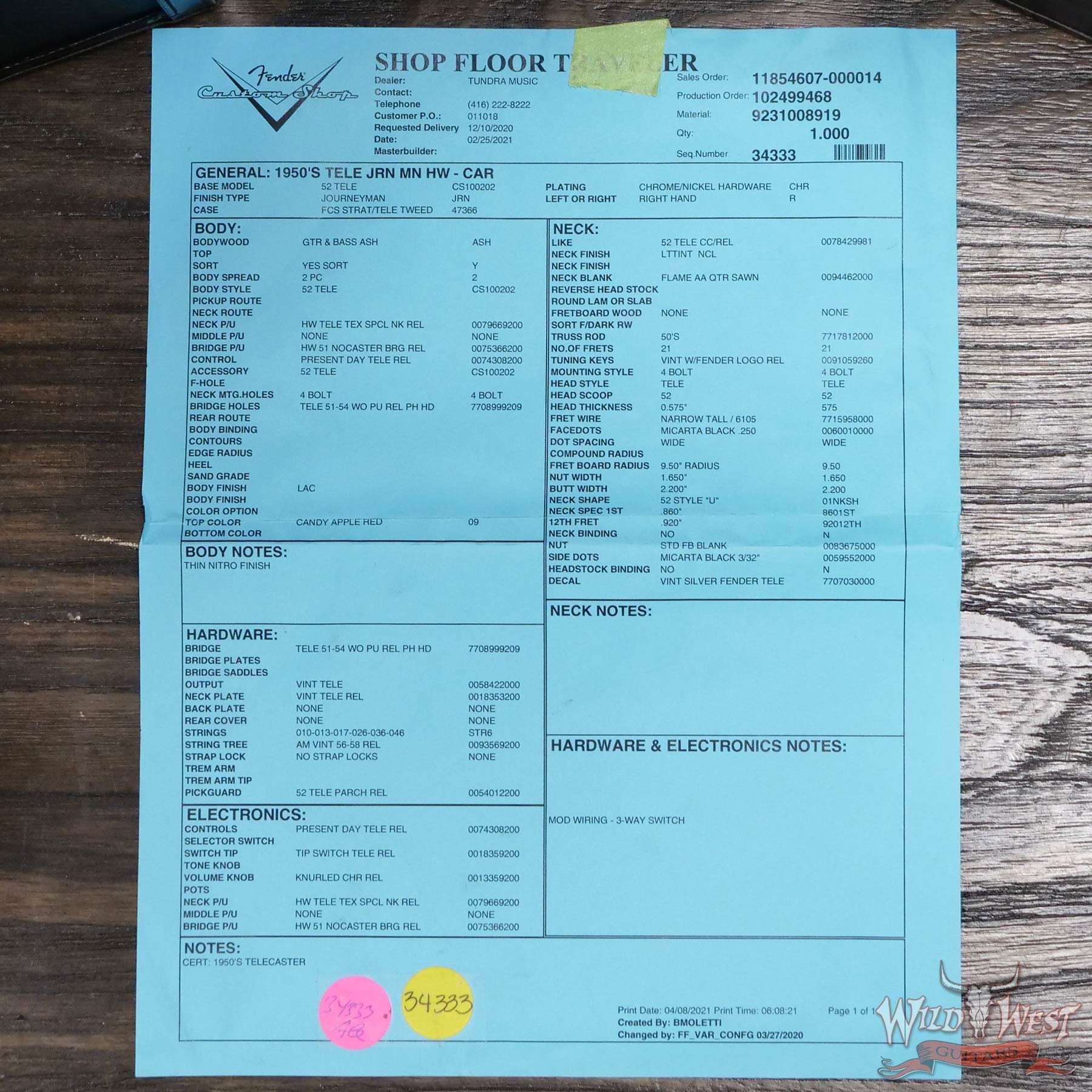 Fender Custom Shop 1950’s Telecaster Hand-Wound Pickups Journeyman Relic Candy Apple Red