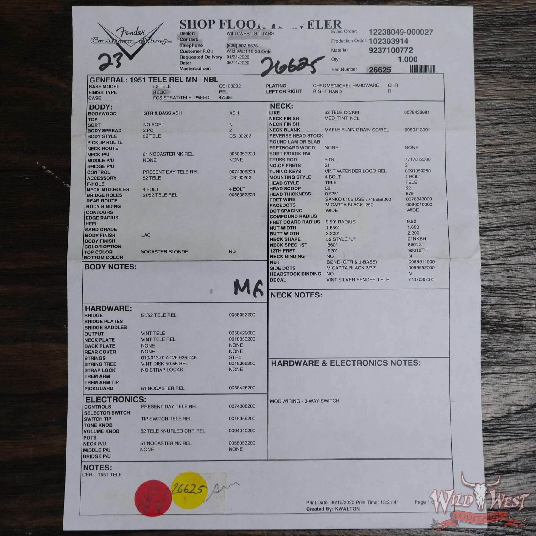 | Model | Fender Custom Shop 1951 Telecaster Relic |