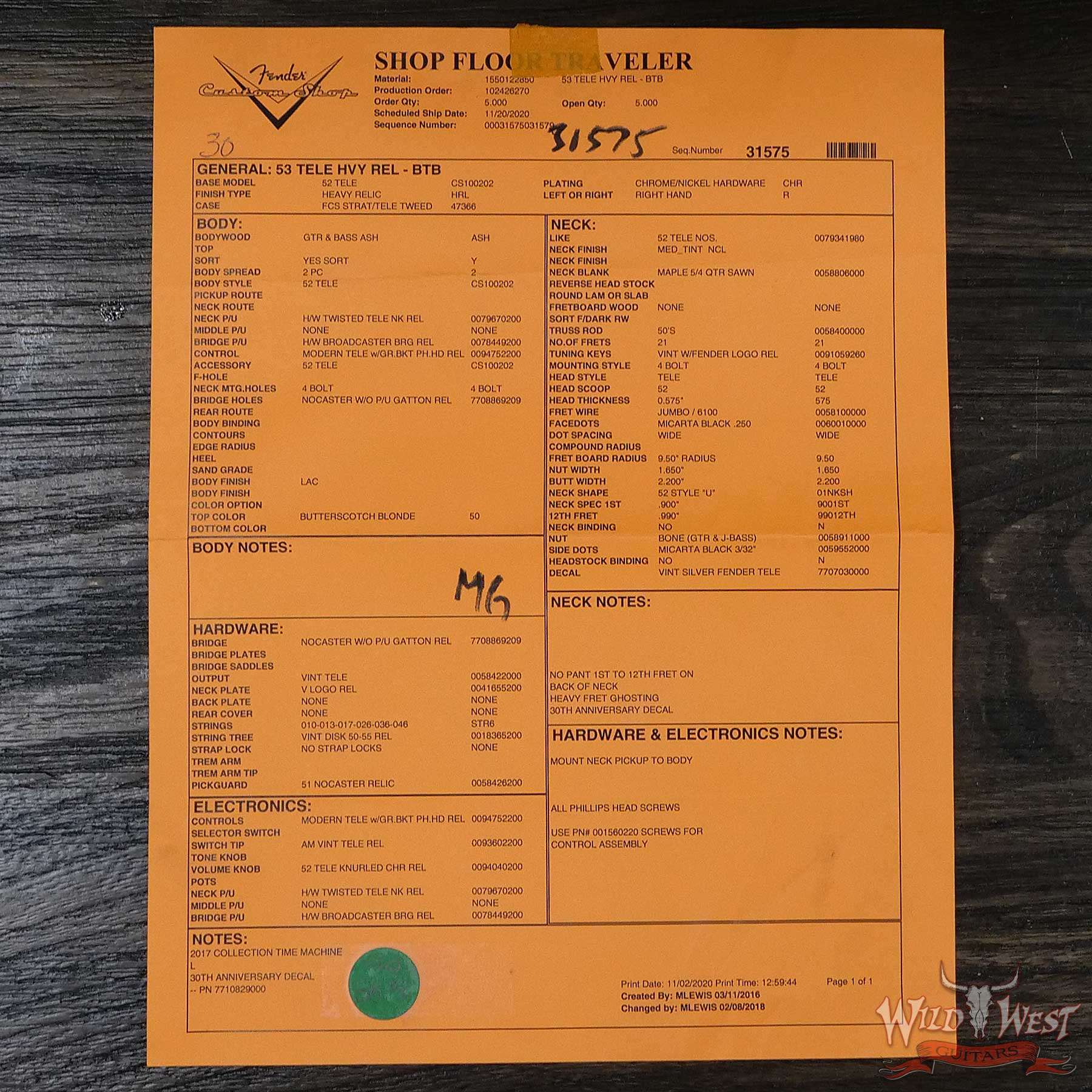 Model: Fender Custom Shop 1953 Telecaster Heavy Relic
