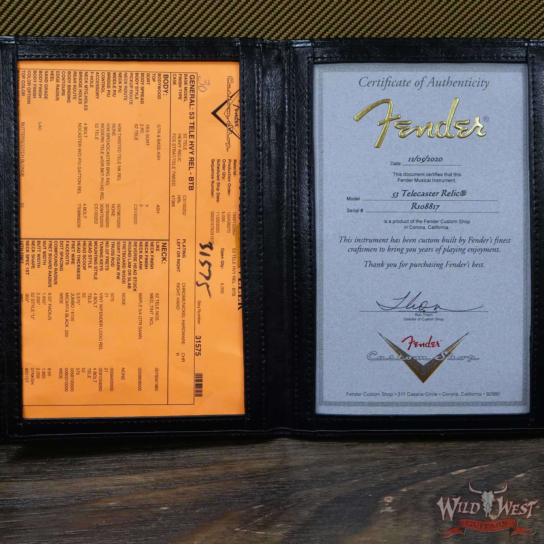 Fender Custom Shop 1953 Telecaster Heavy Relic Quatersawn Maple Neck Hand-Wound Pickups Butterscotch Blonde