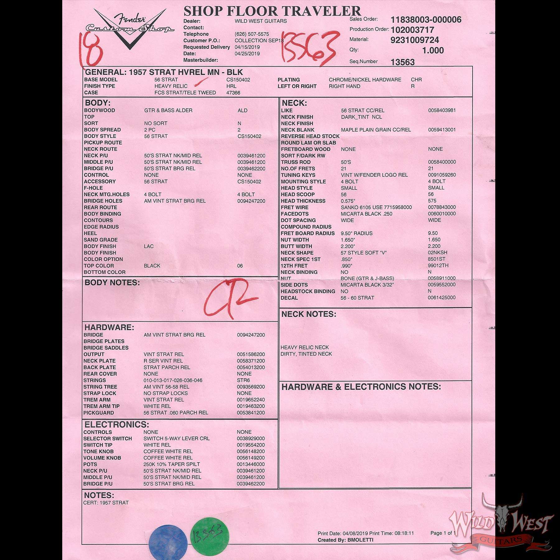 Fender Custom Shop 1957 Stratocaster Reissue Heavy Relic Maple Neck Black