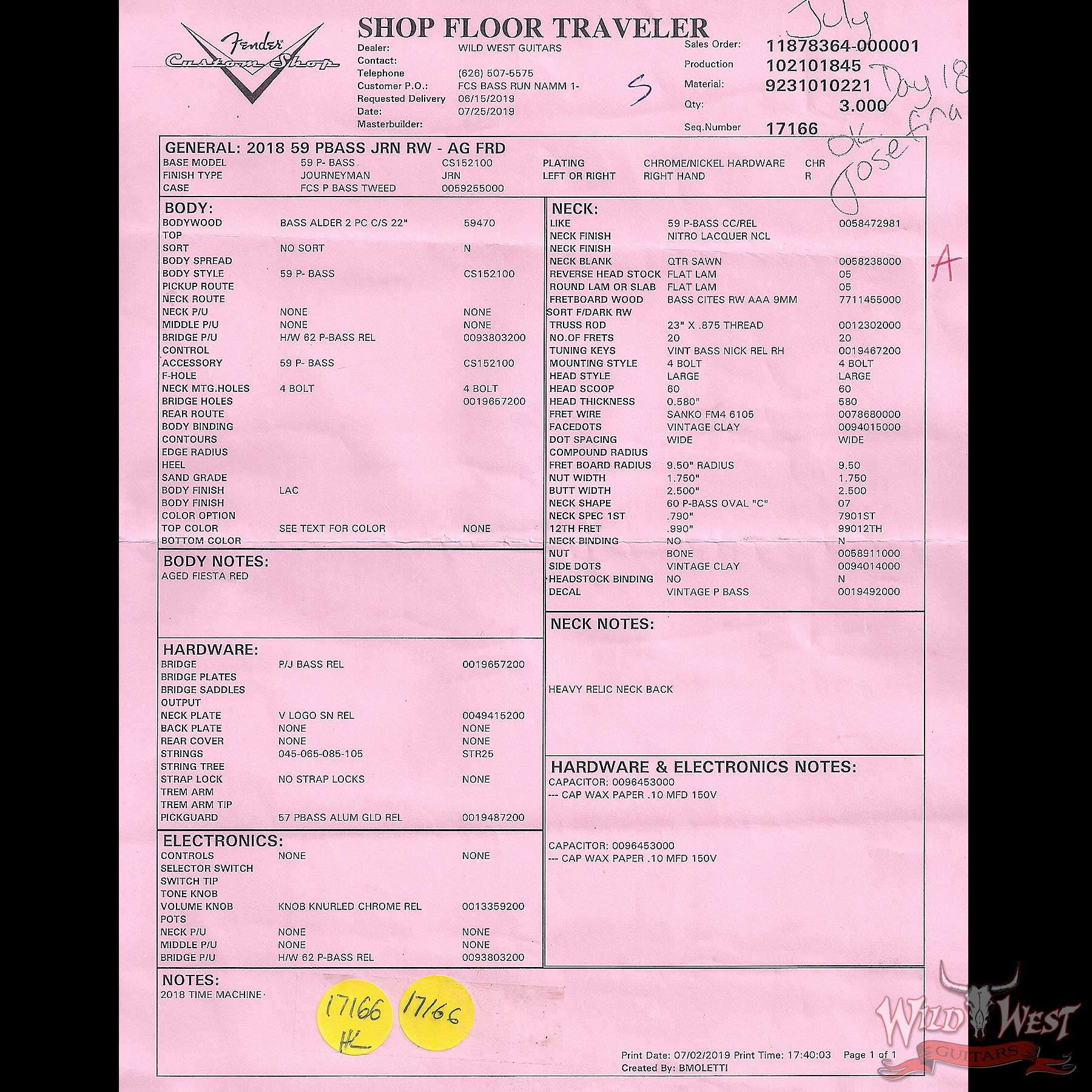 Fender Custom Shop 1959 Precision Bass Journeyman Relic AAA Rosewood Slab Board Josefina Hand-wound PU Fiesta Red