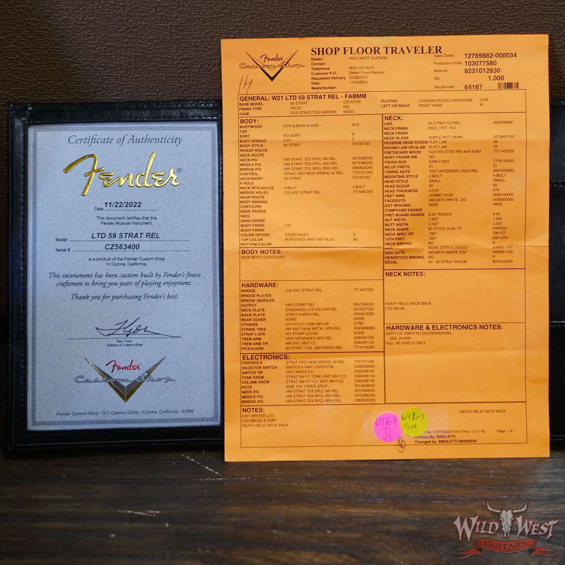 Fender Custom Shop 1959 Stratocaster AAA Rosewood Board Relic Faded Aged Burgundy Mist Metallic