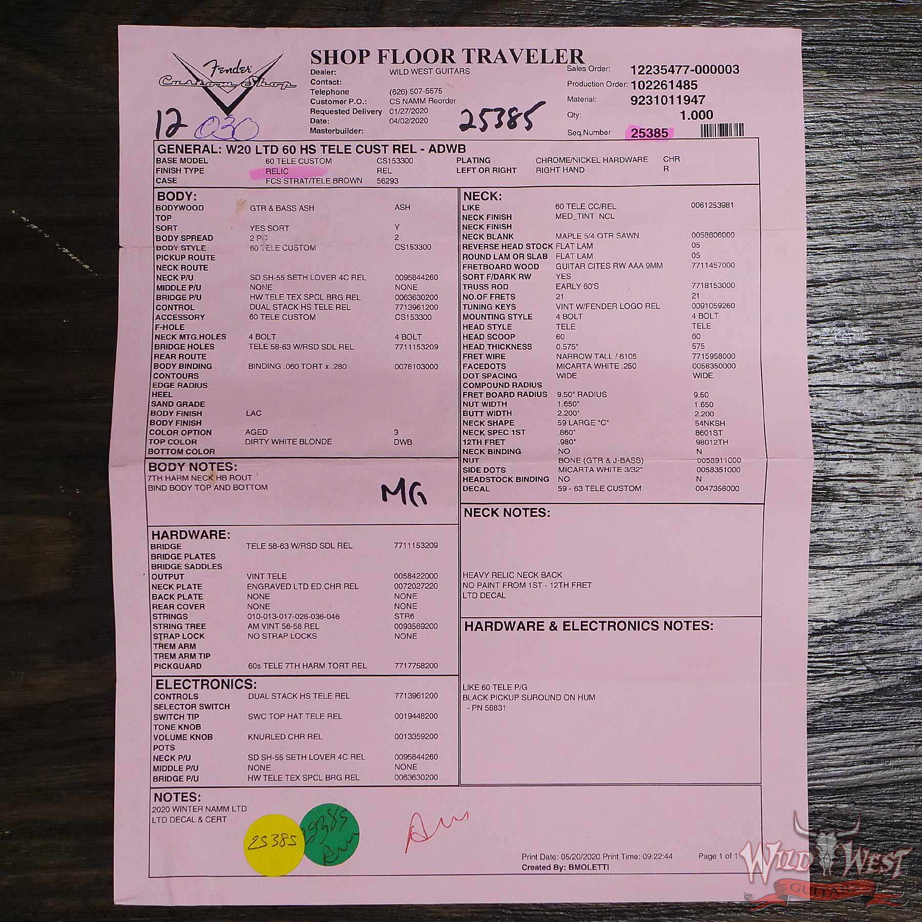 Fender Custom Shop 1960 HS Telecaster Custom Relic Aged Dirty White Blonde