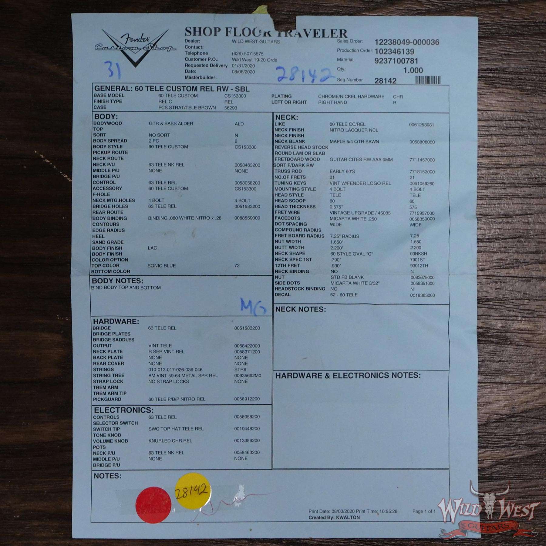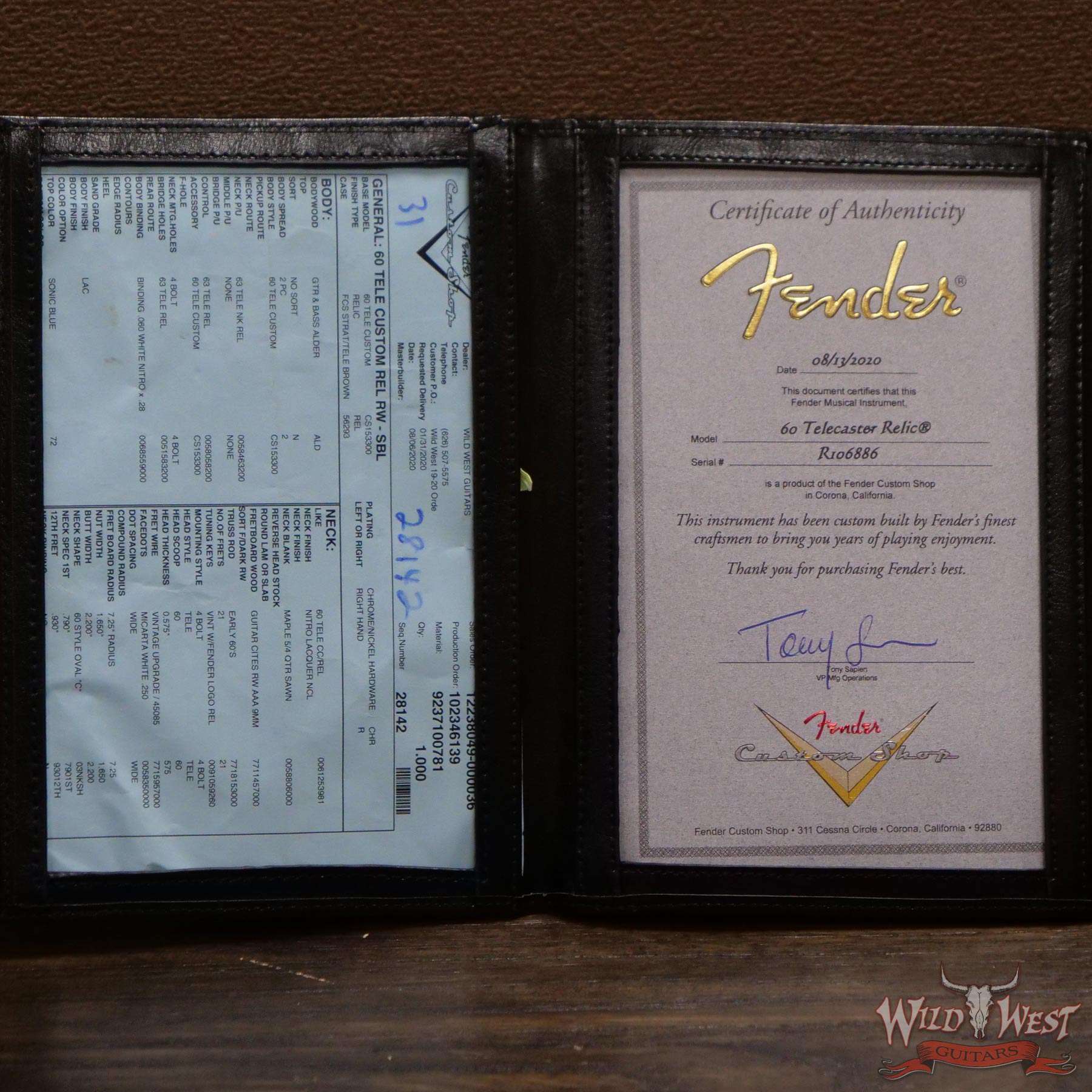 Fender Custom Shop 1960 Telecaster Custom Relic Quater-Sawn Maple AAA Rosewood Fingerboard Sonic Blue