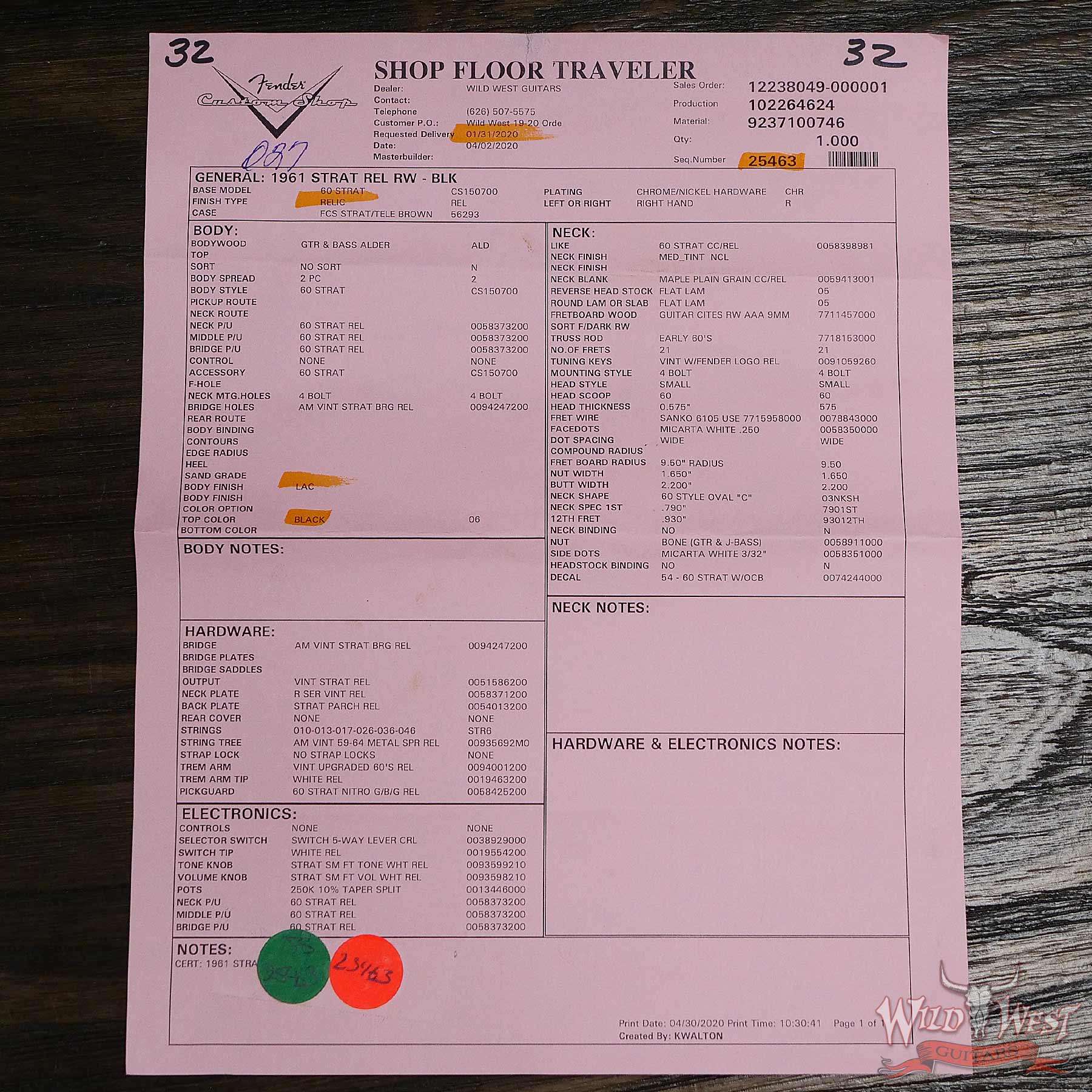 Model | Fender Custom Shop 1961 Stratocaster Relic |