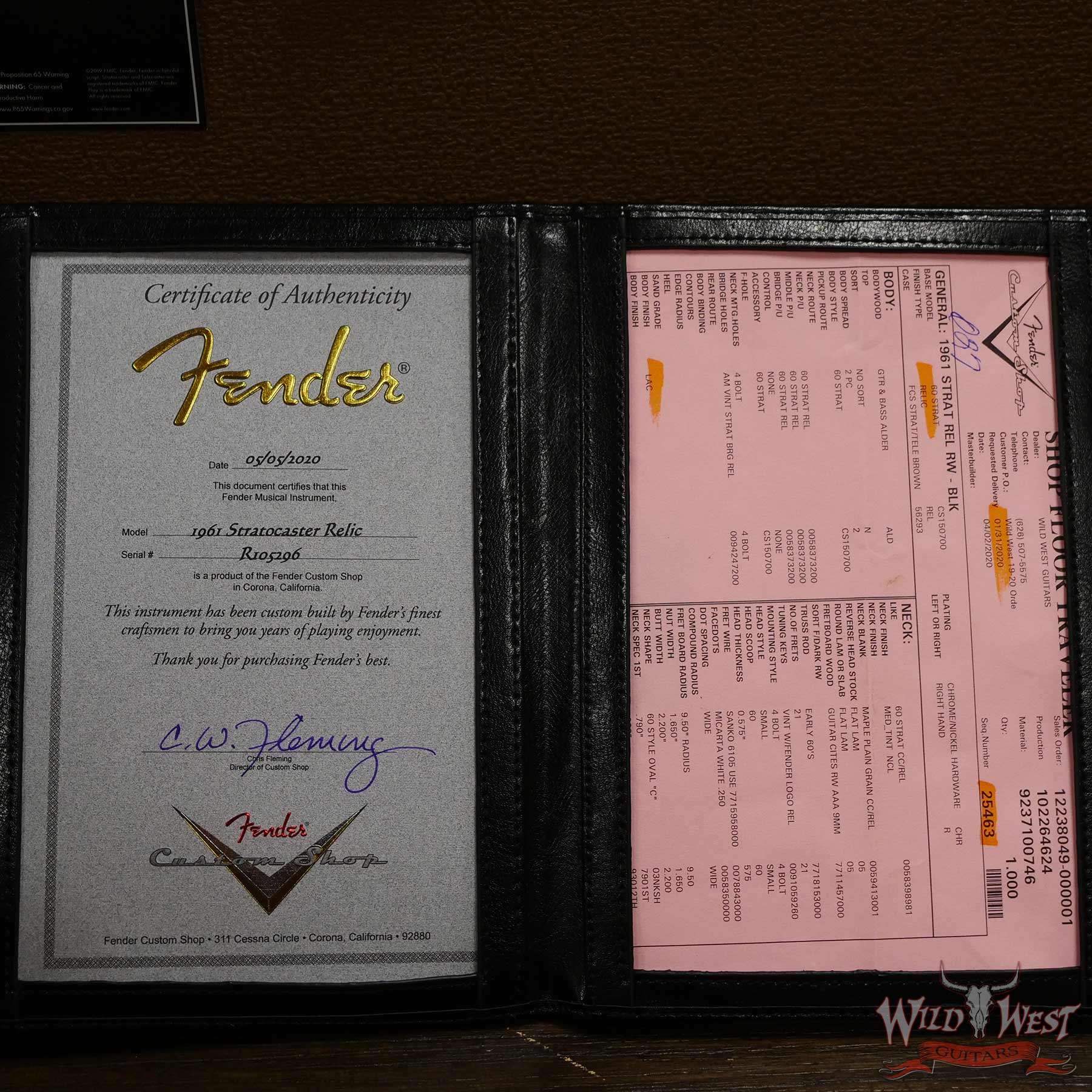 Fender Custom Shop 1961 Stratocaster Relic AAA Rosewood Slab Board Maple Neck Black