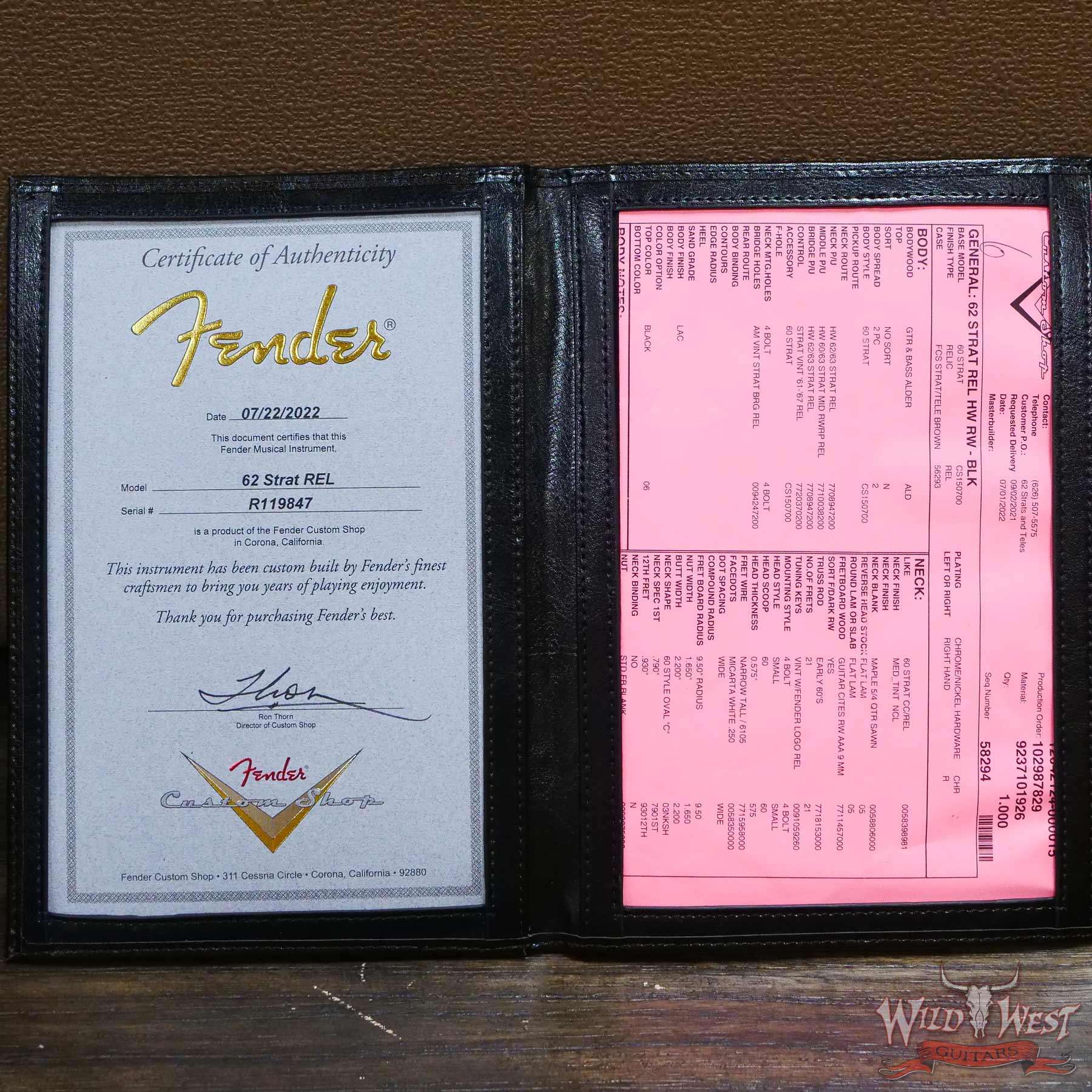 Fender Custom Shop 1962 Stratocaster Hand-Wound Pickups AAA Dark Rosewood Slab Board Relic Black (Black Pickguard)