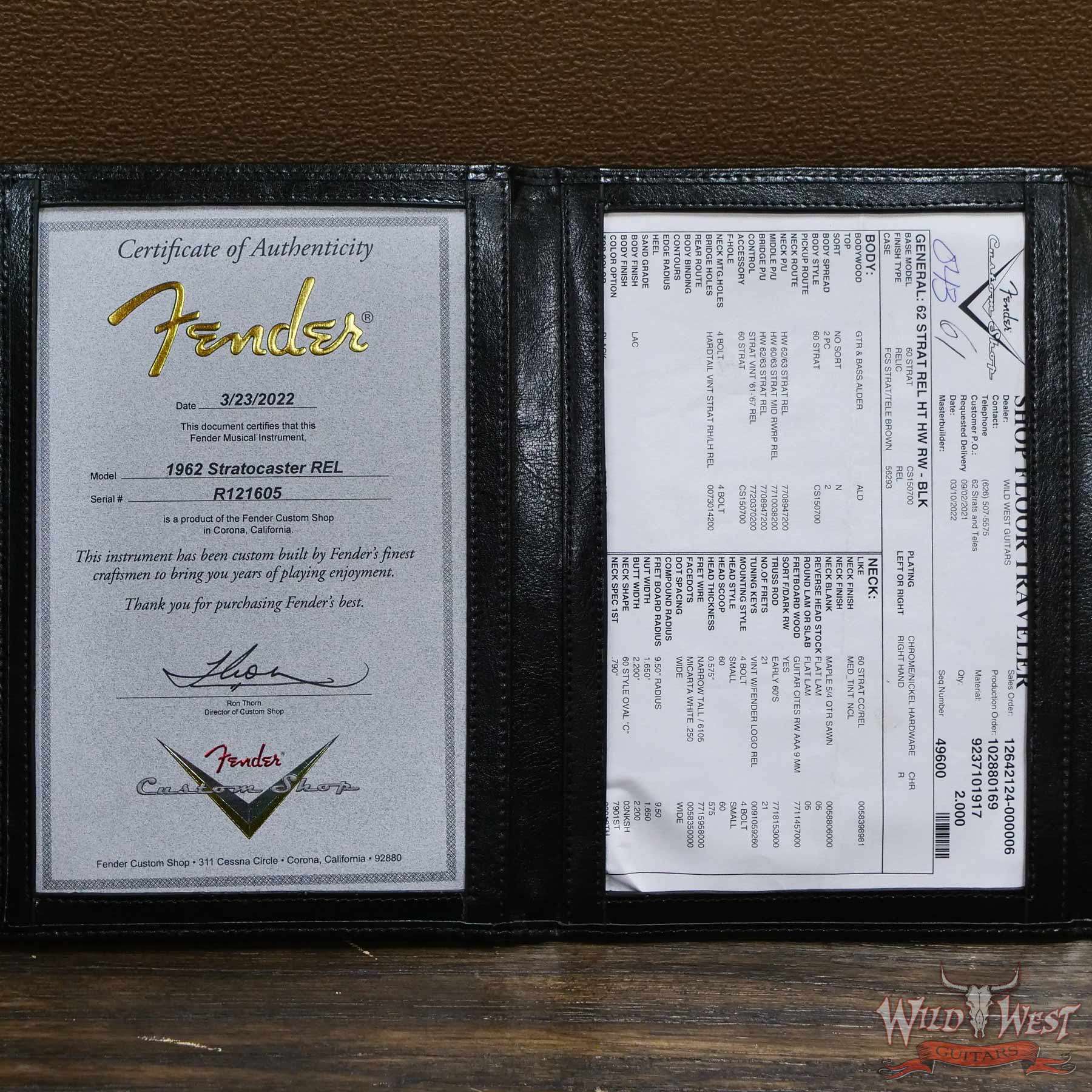 Fender Custom Shop 1962 Stratocaster Hardtail Hand-Wound Pickups AAA Dark Rosewood Slab Board Relic Black 6.90 LBS
