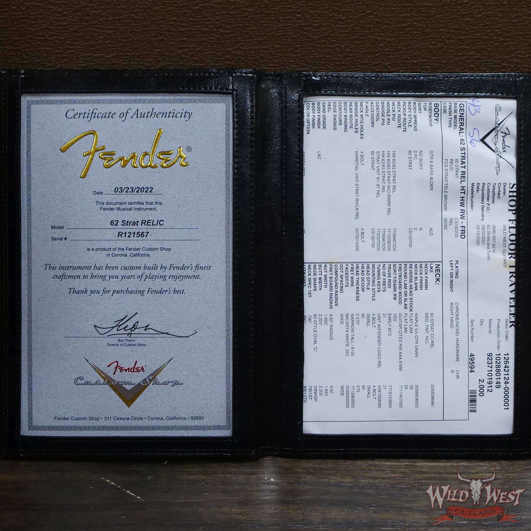 Fender Custom Shop 1962 Stratocaster Hardtail Hand-Wound Pickups AAA Dark Rosewood Slab Board Relic Fiesta Red