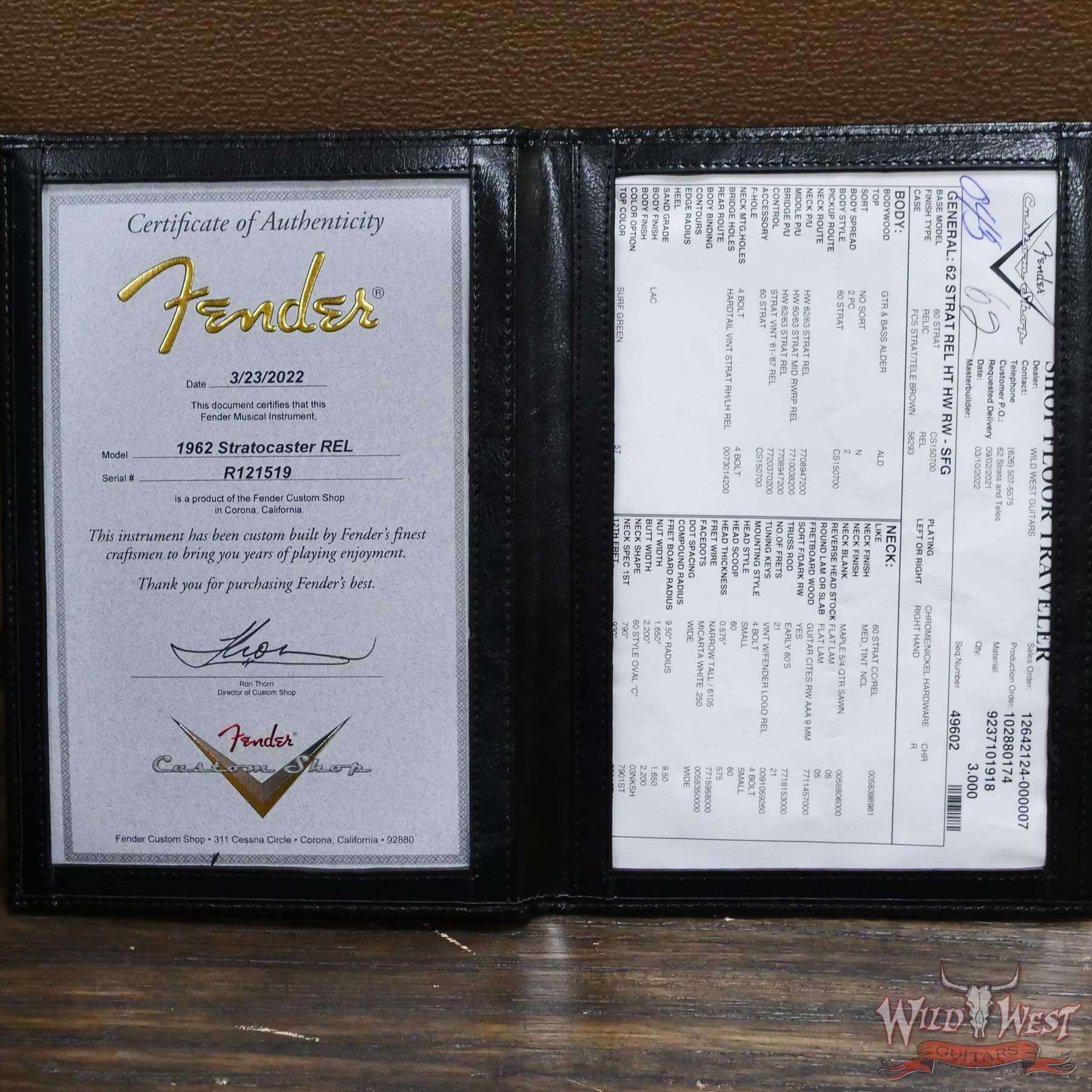 Fender Custom Shop 1962 Stratocaster Hardtail Hand-Wound Pickups AAA Dark Rosewood Slab Board Relic Surf Green 6.95 LBS