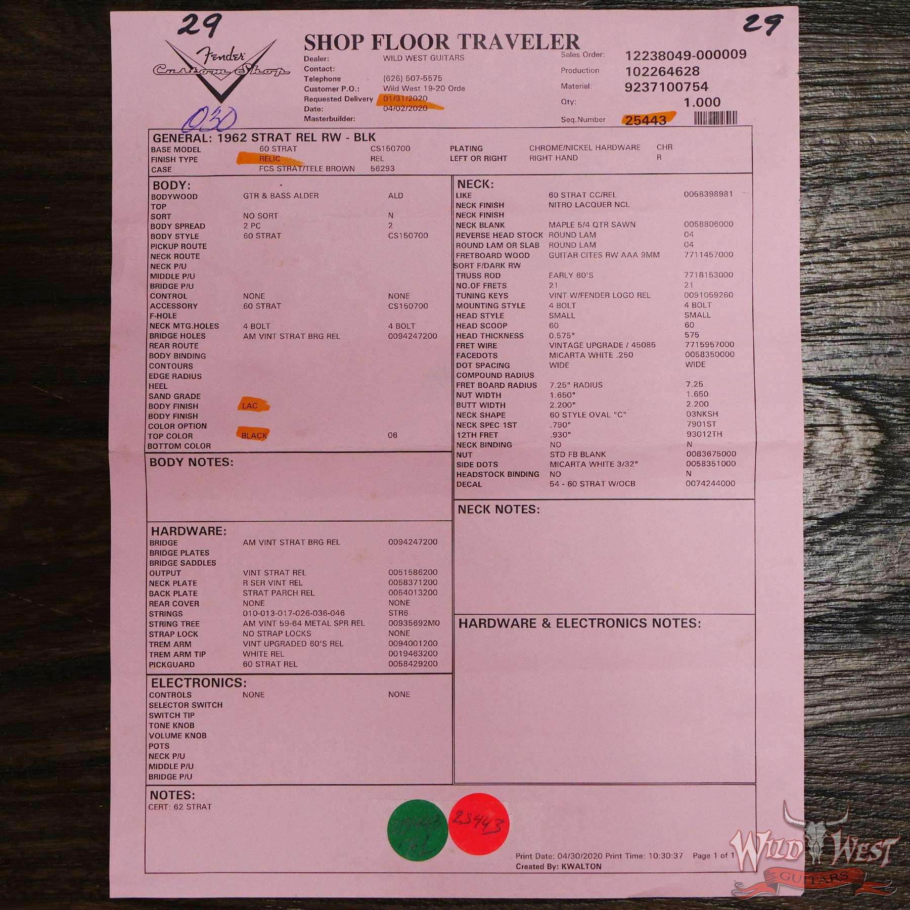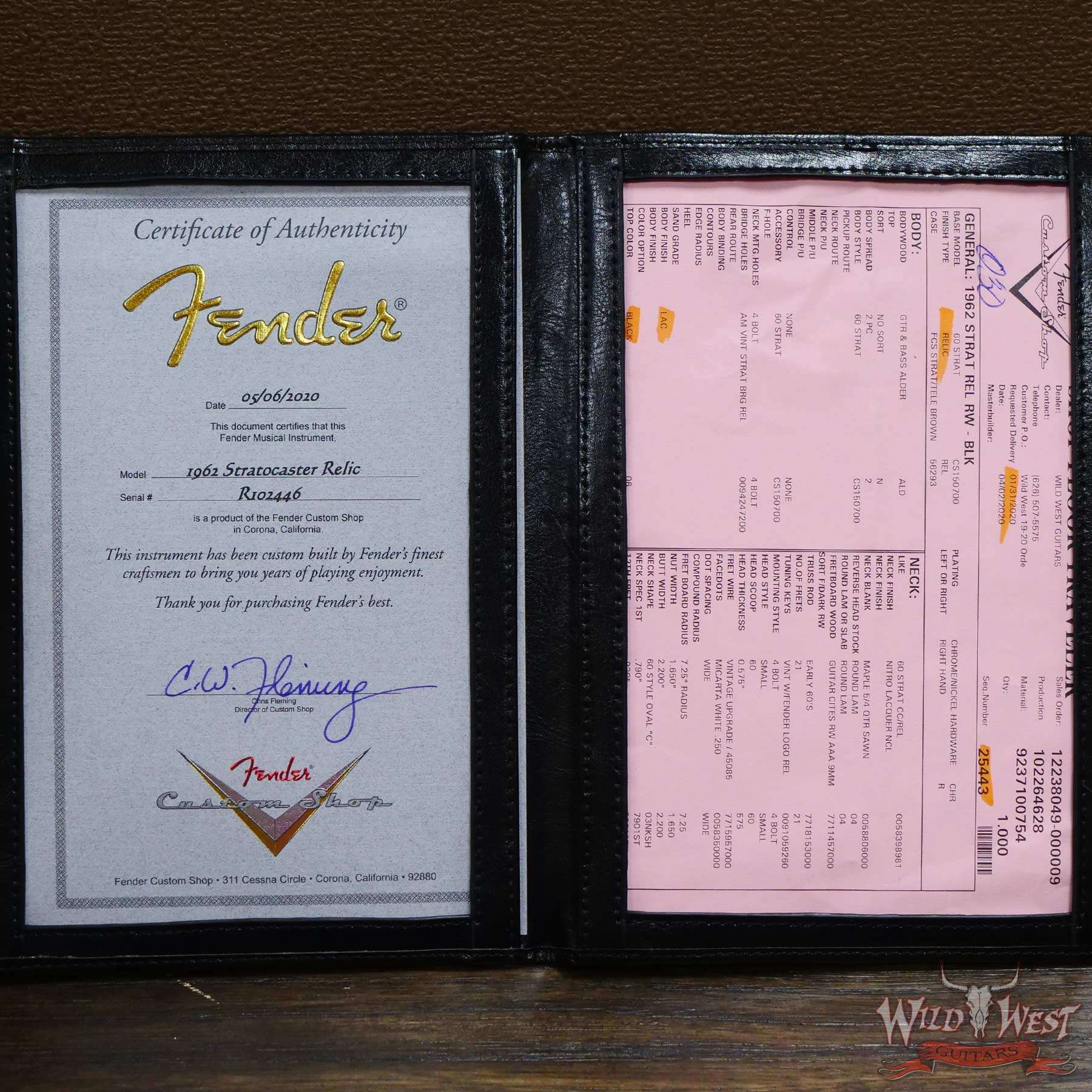 Fender Custom Shop 1962 Stratocaster Relic AAA Rosewood Board with Quartersawn Maple Neck Black