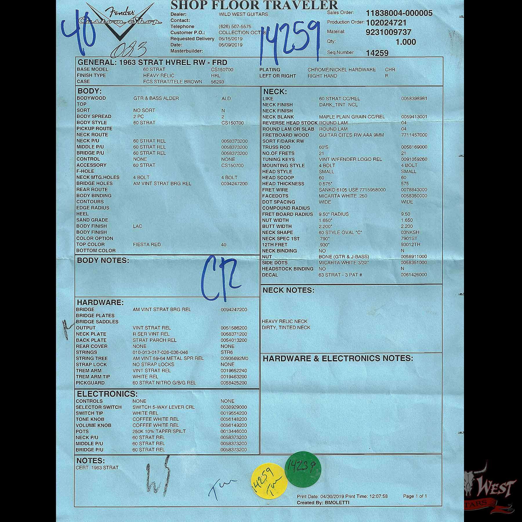 Fender Custom Shop 1963 Stratocaster heavy Relic Round Lam AAA Rosewood Fingerboard Fiesta Red
