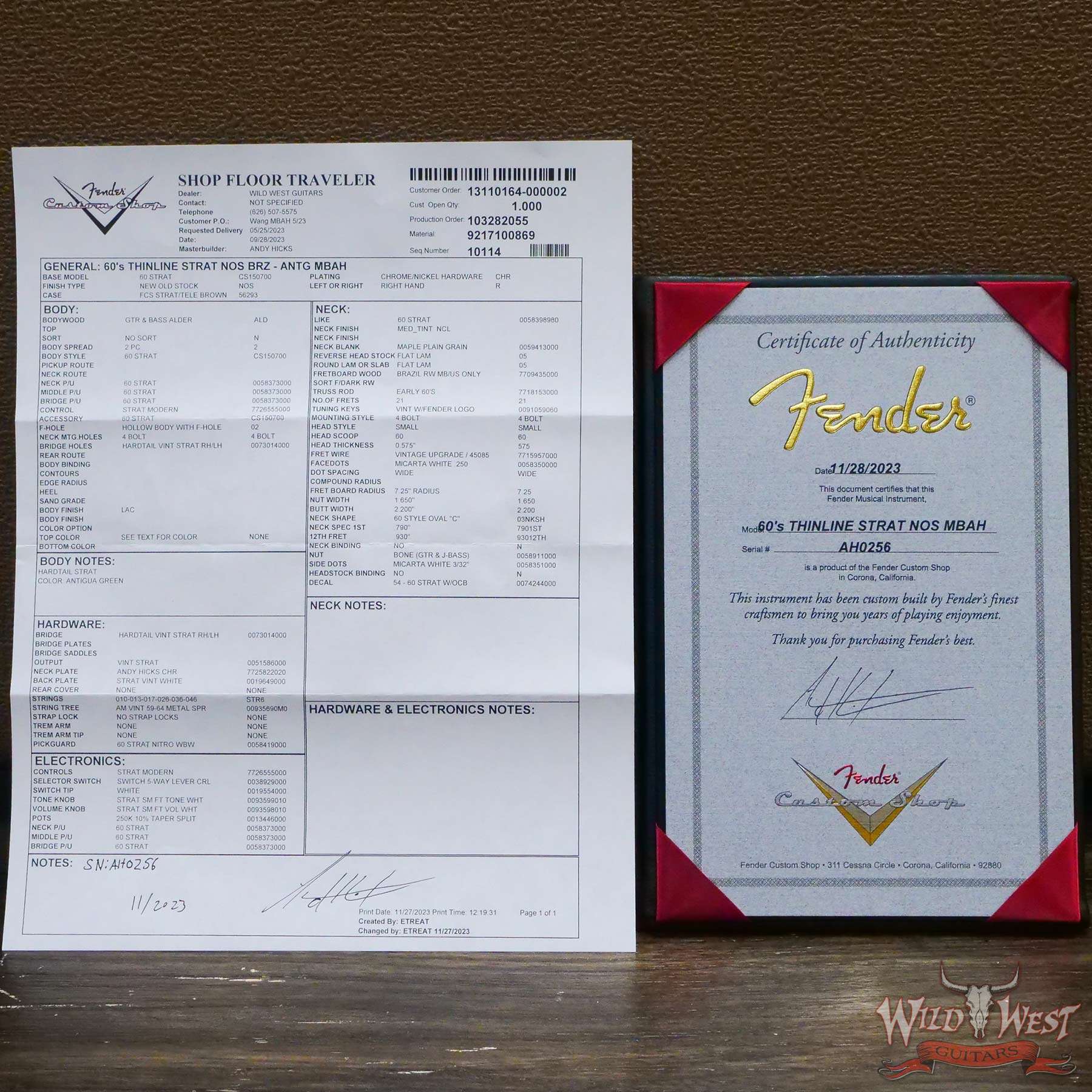 Fender Custom Shop Andy Hicks Masterbuilt 60’s Stratocaster Thinline Hardtail Brazilian Rosewood Board NOS Antigua