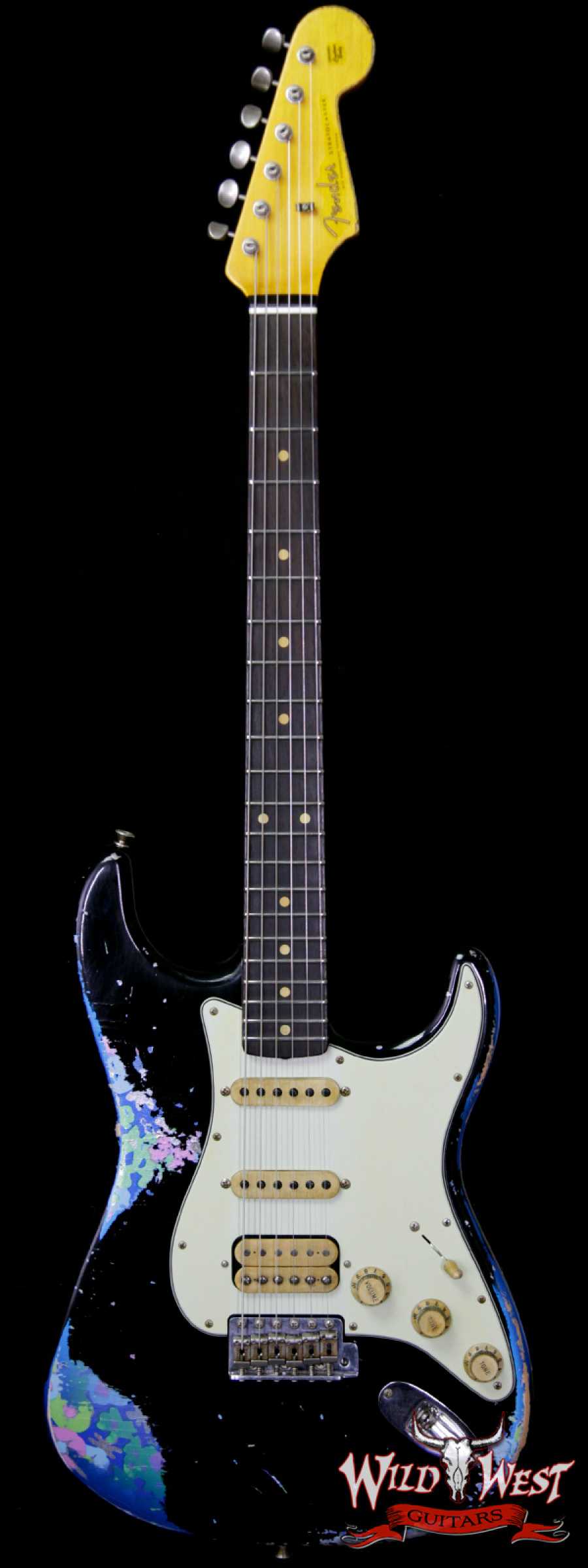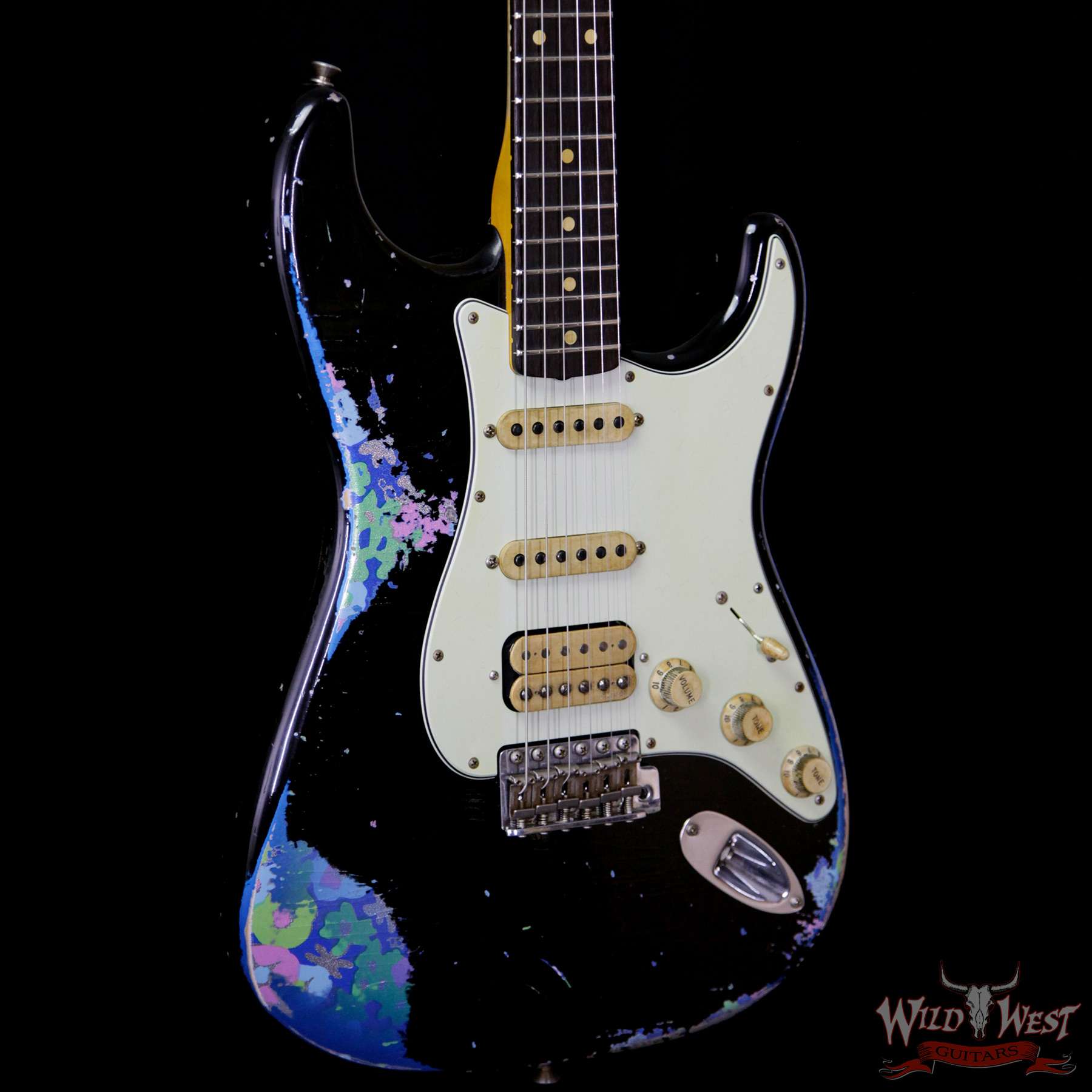 Fender Custom Shop Black Lightning 2.0 Stratocaster Heavy Relic HSS 21 Frets Rosewood Board Blue Flower