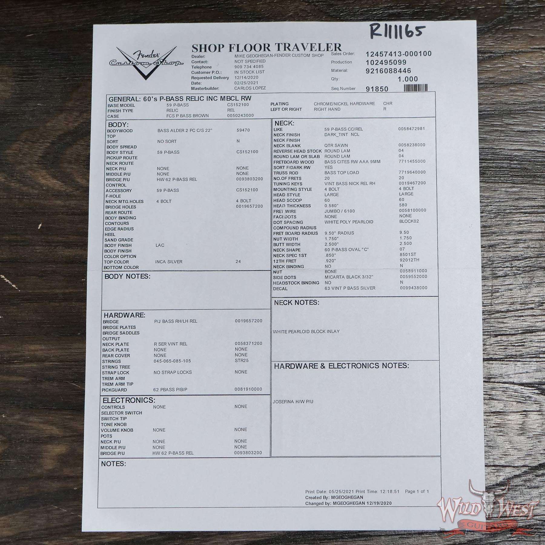 Fender Custom Shop Carlos Lopez Masterbuilt 60’s Precision Bass P-Bass Josefina Hand-Wound Pickup Relic Inca Silver