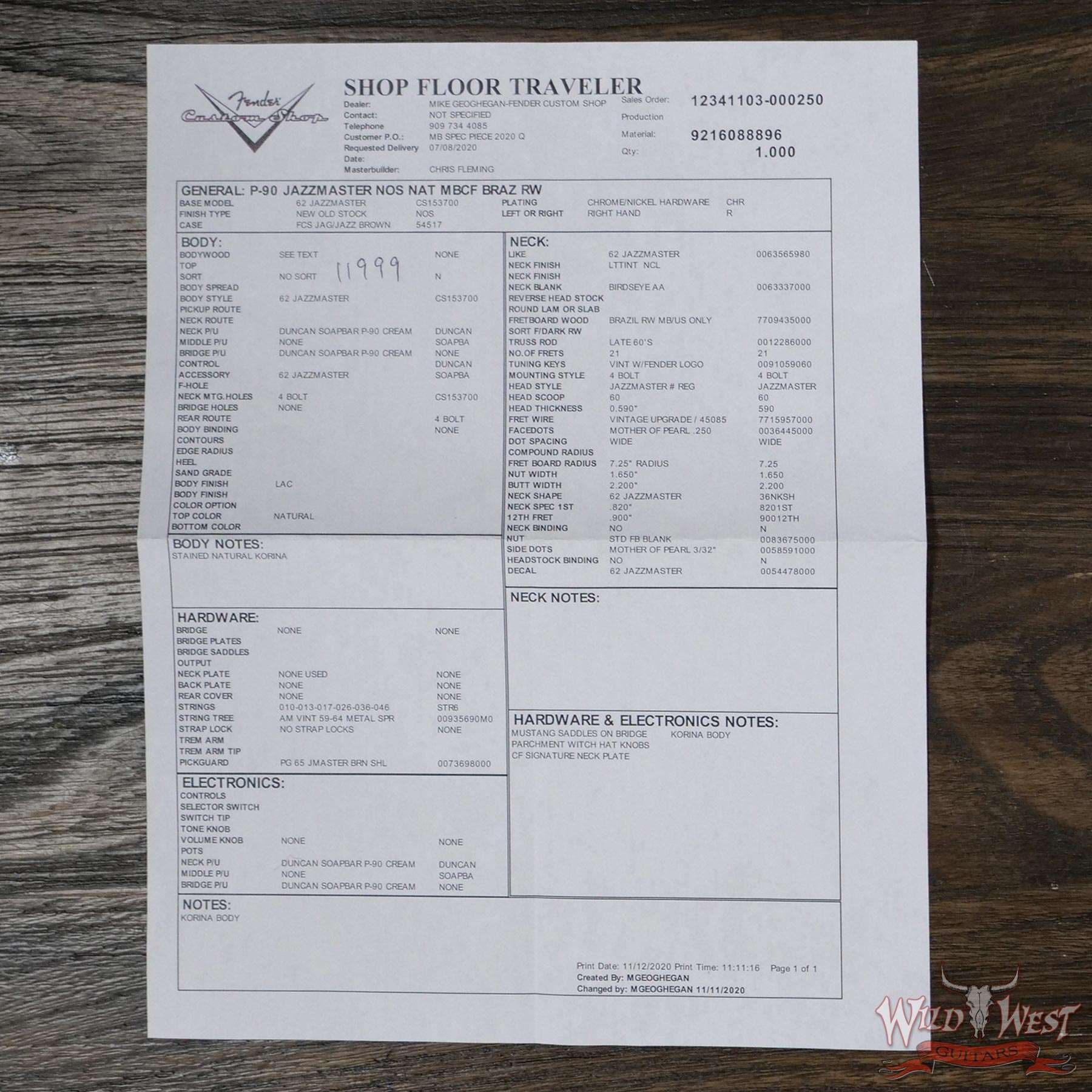 Fender Custom Shop Chris Fleming Masterbuilt P-90 Korina Jazzmaster NOS Brazilian Rosewood Fingerboard Natural
