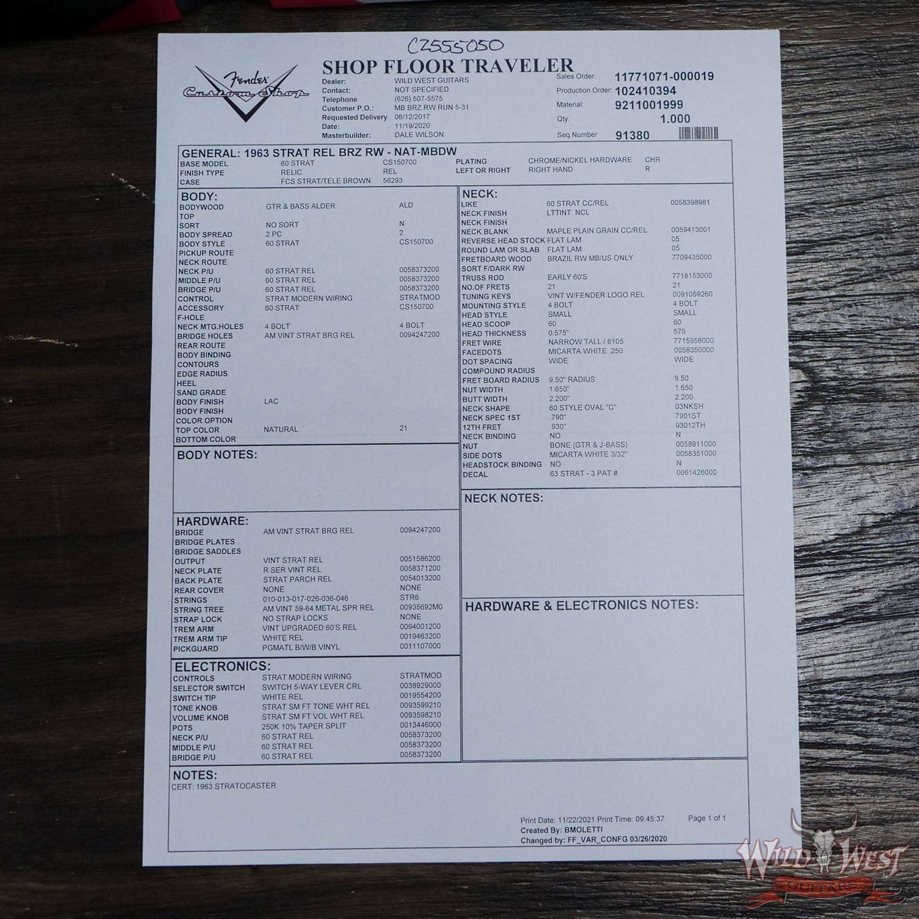 Model: Fender Custom Shop MBDW 1963 Stratocaster BRZ